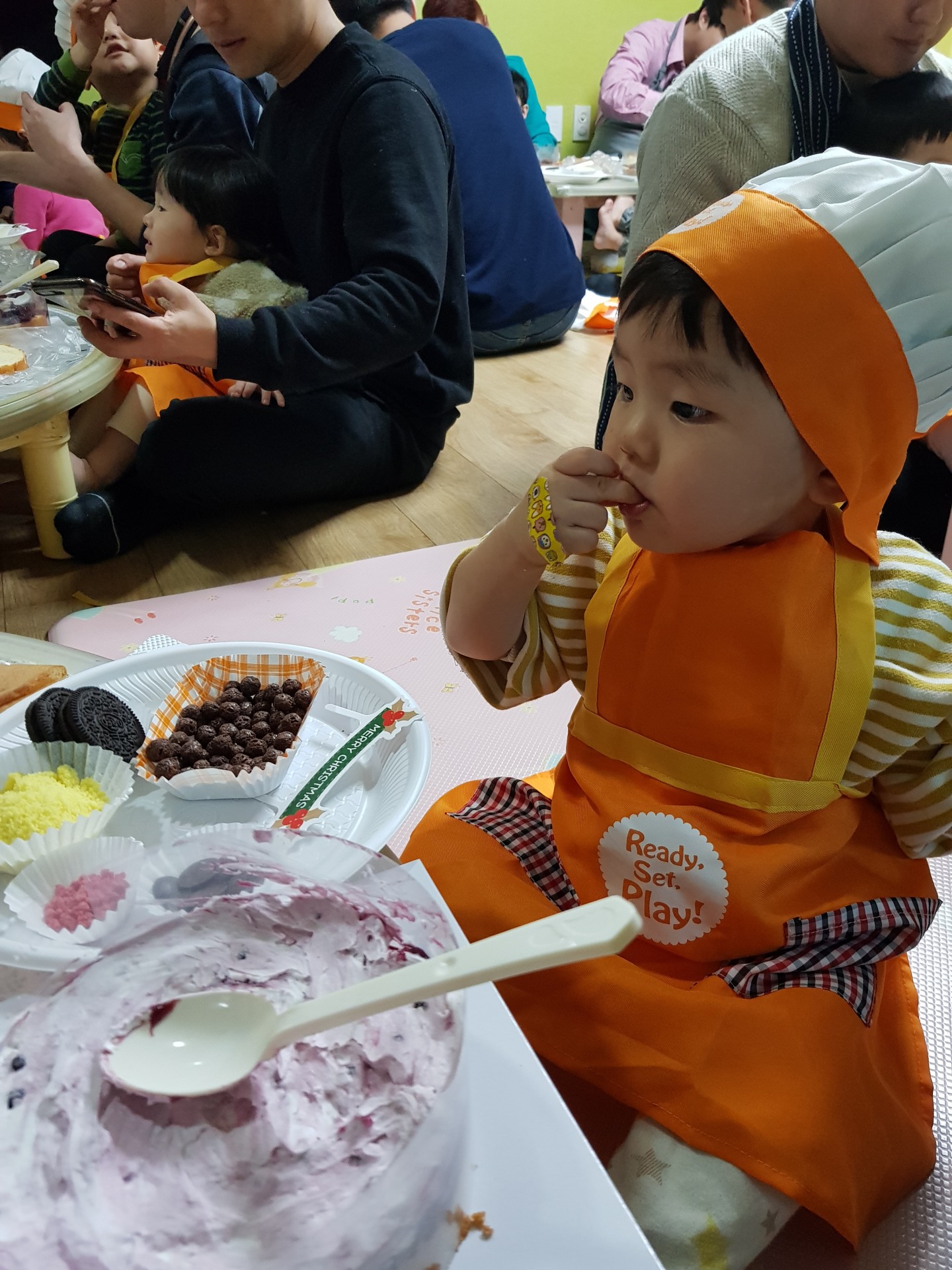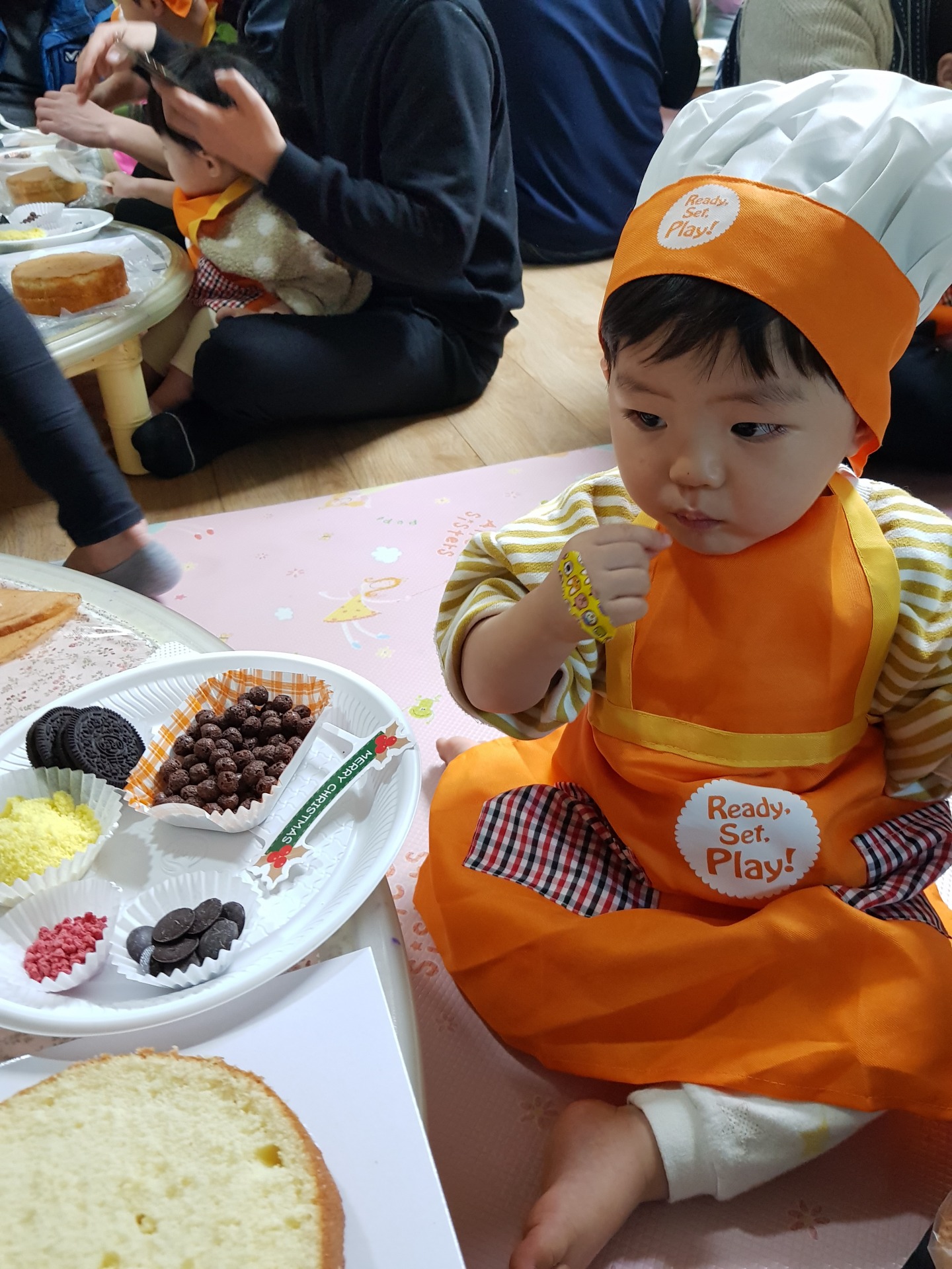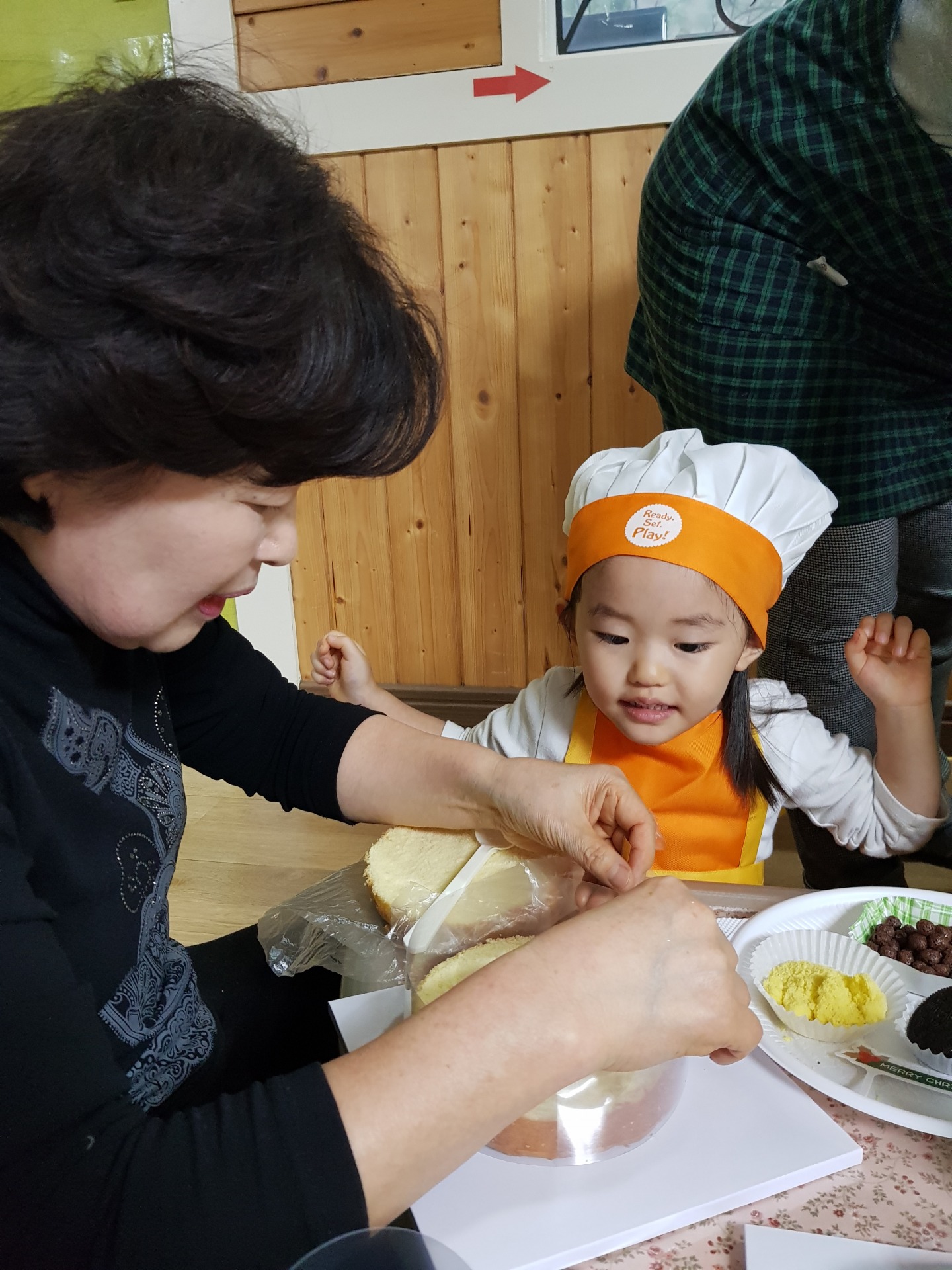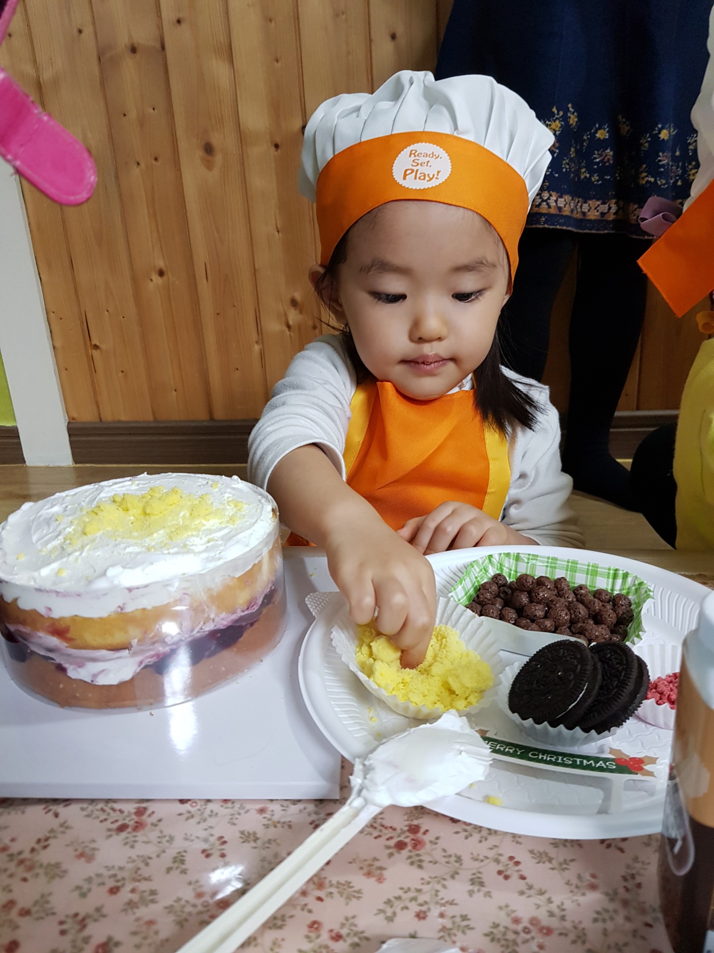 어린이집에서 연말에 학부모 참여 수업으로 케이크 만들기를 했습니다~