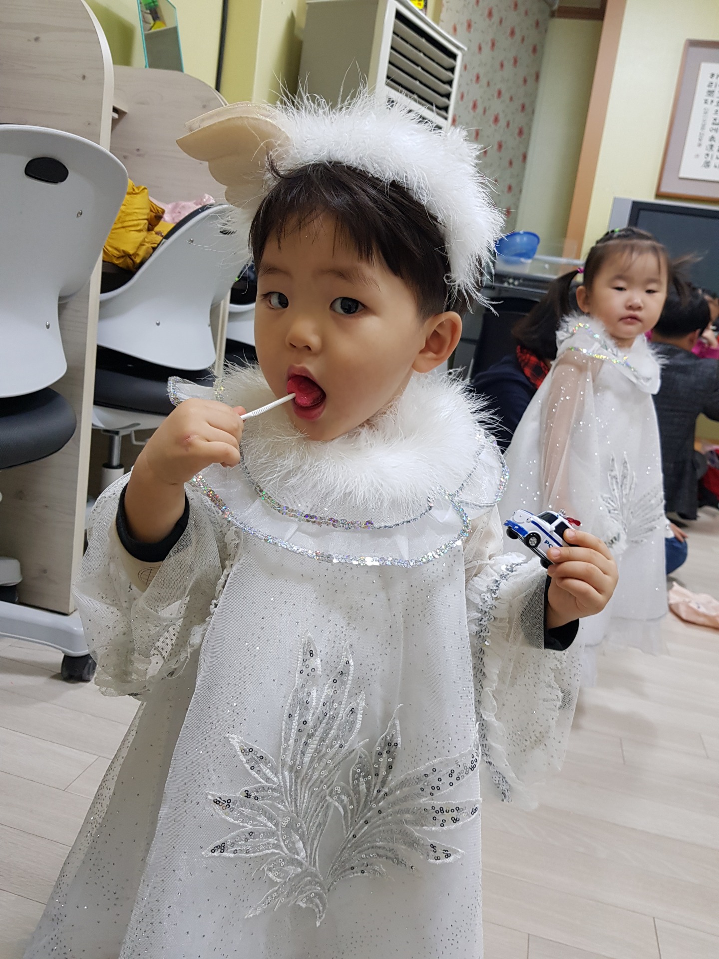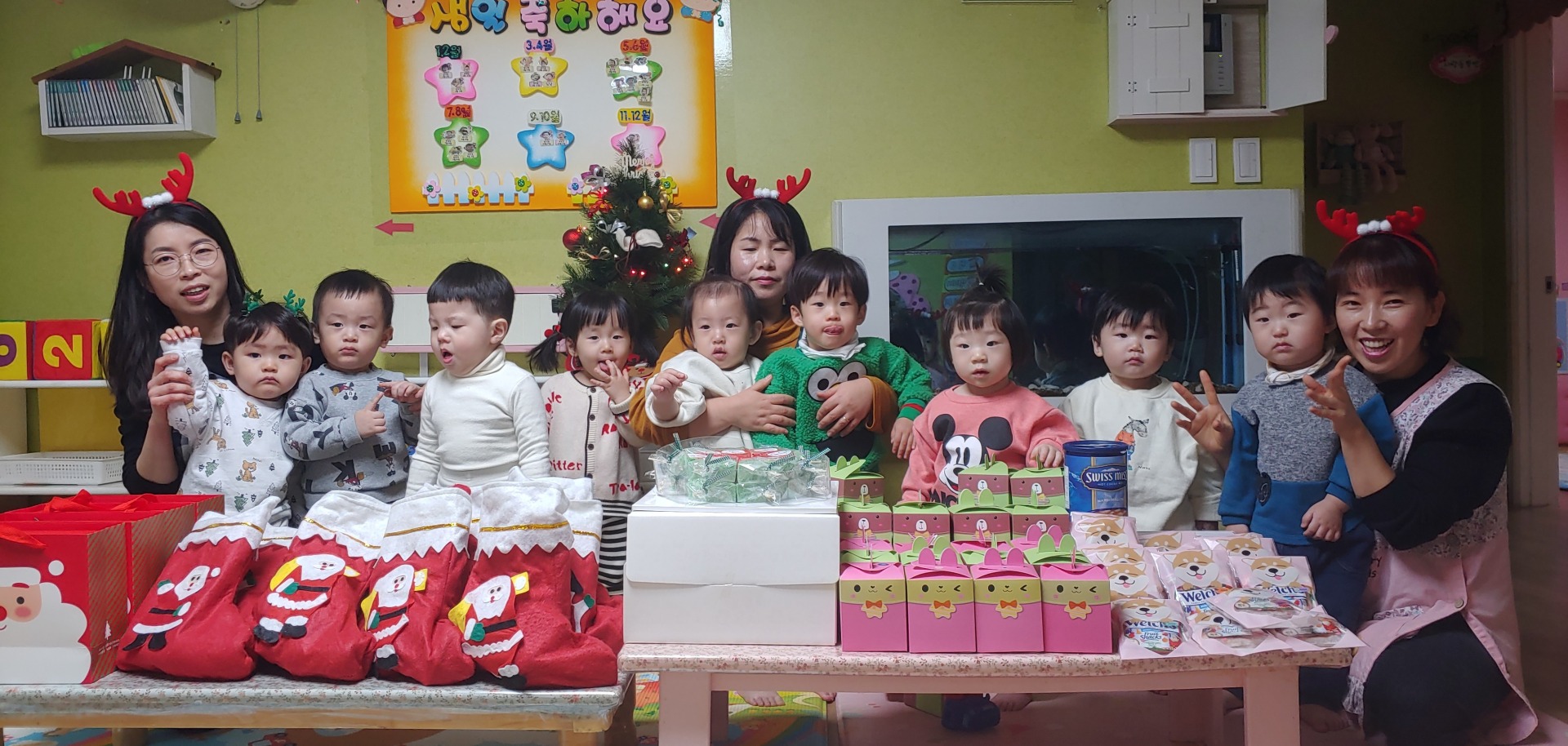 크리스마스 이브에 어린이집에서 크리스마스 행사를 했어요.