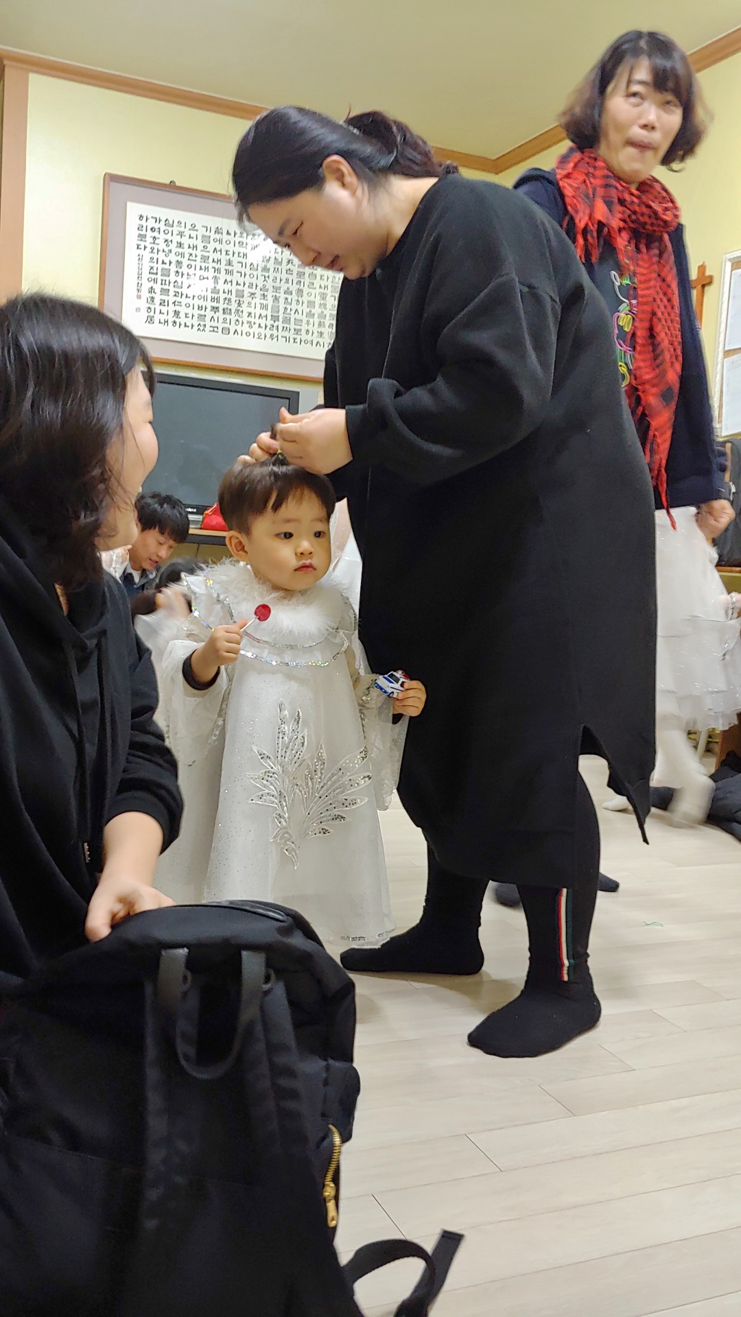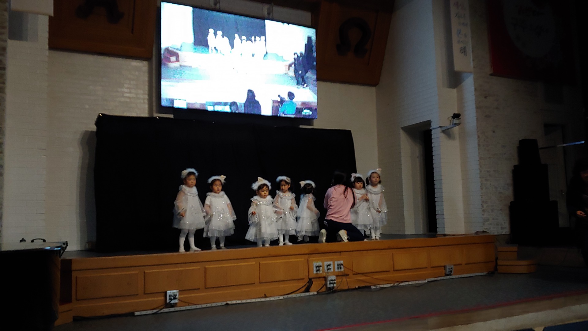 올해는 주은이를 뺀 나머지 모든  유치부 아이들이 얼어서ㅋㅋㅋ 게다가 서로 오해가 있어서 두번째 음악은 연습 안한게 틀어져서 완전 엉망이 되었어요(┬┬﹏┬┬)