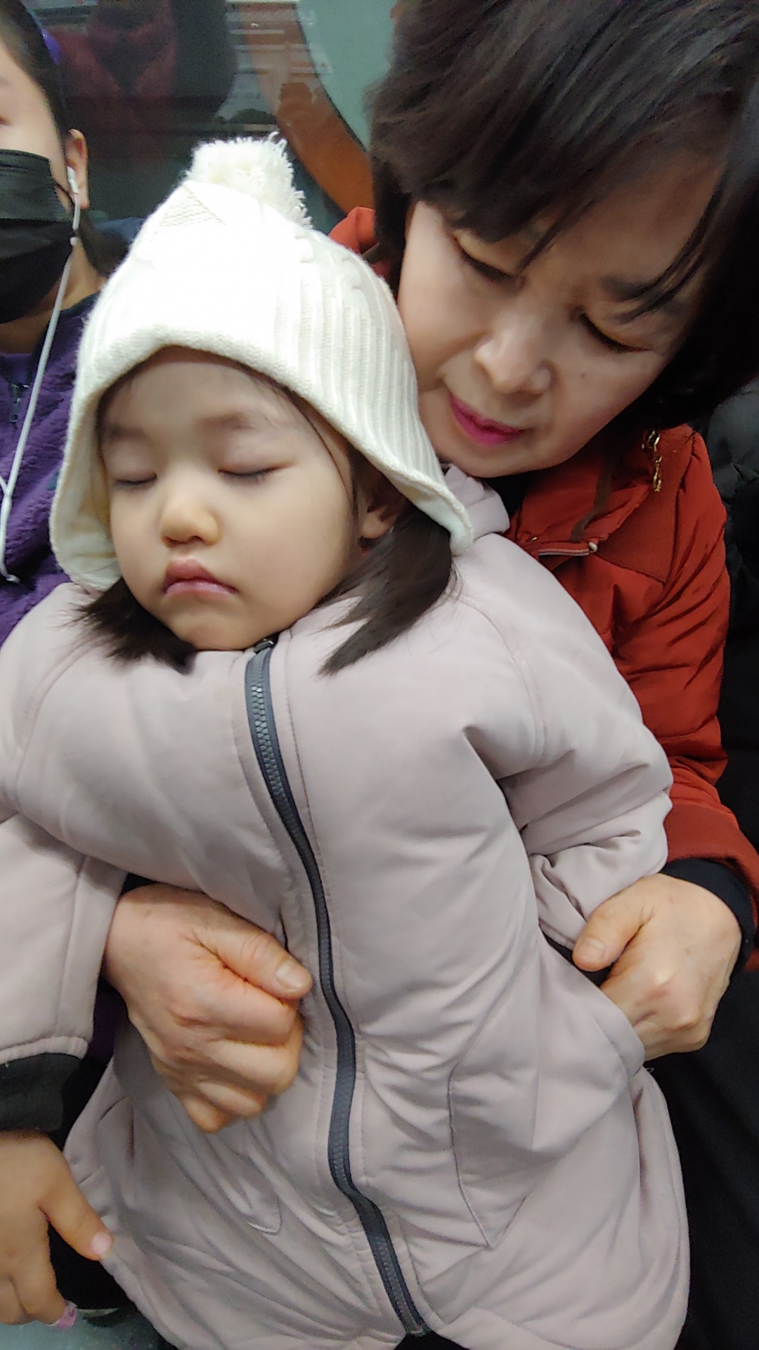 연말 남포동이다 보니 차를 두고 지하철로 이동했는데, 외할머니 품에서 잠든 서현( ̄o ̄) . z Z