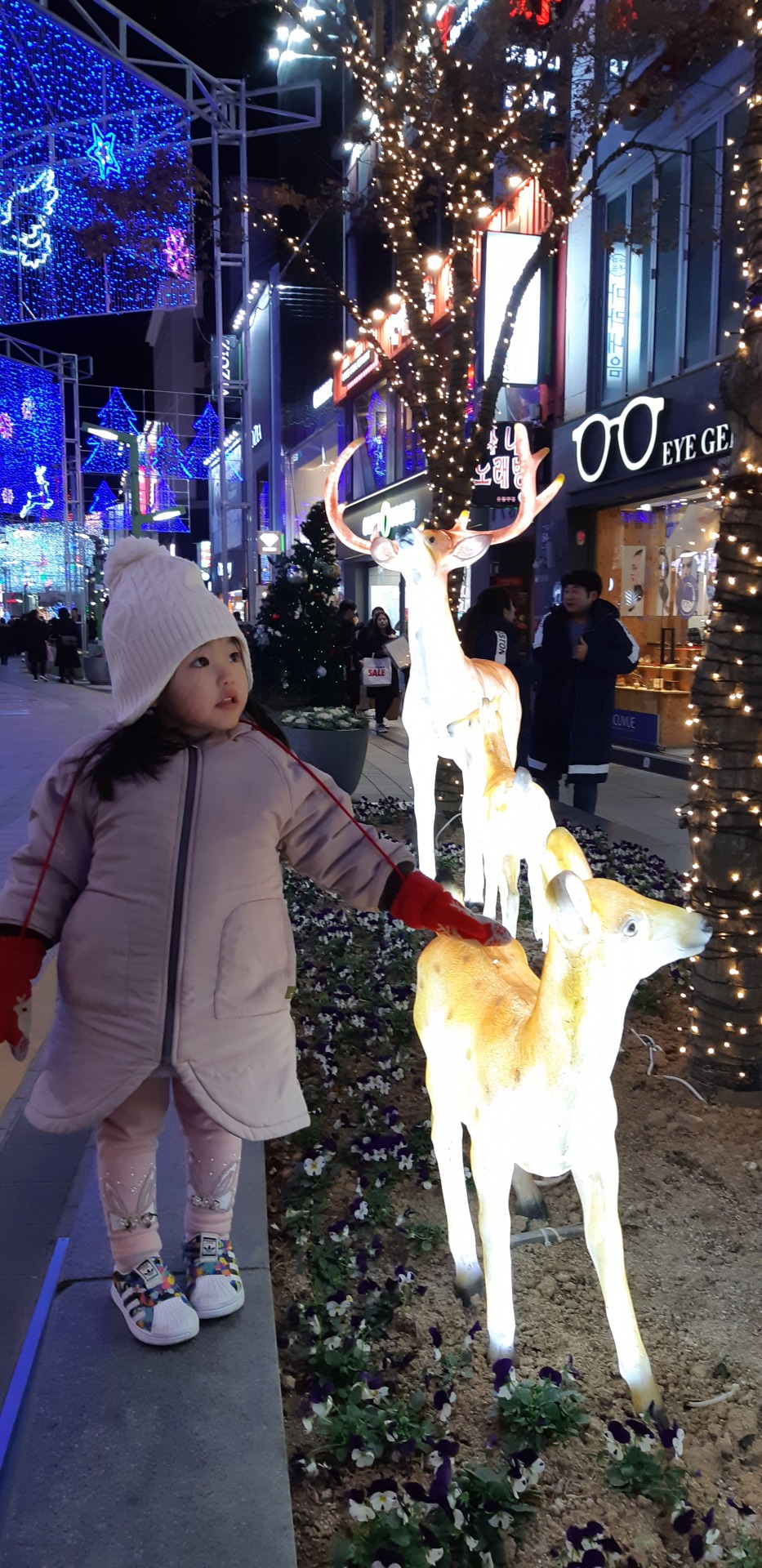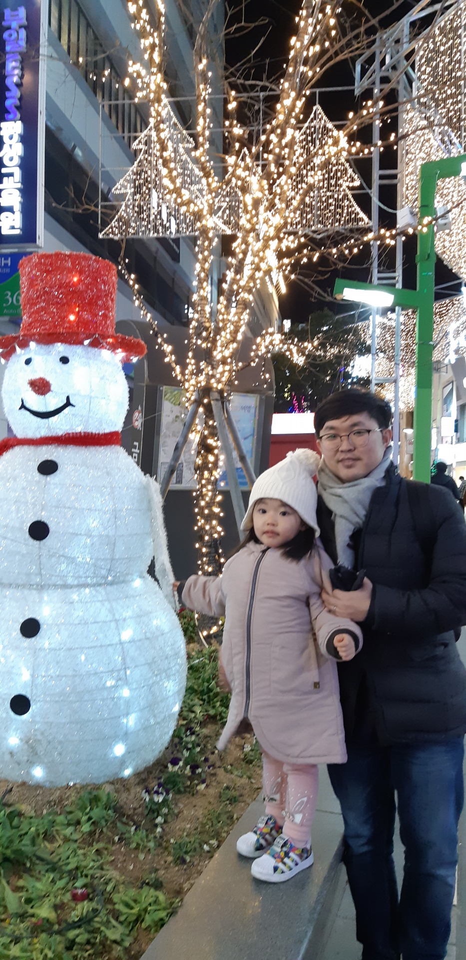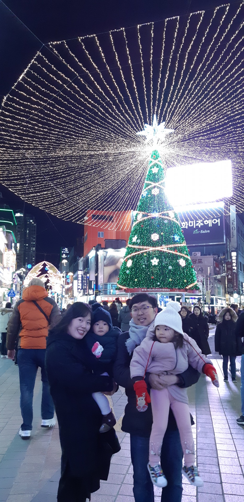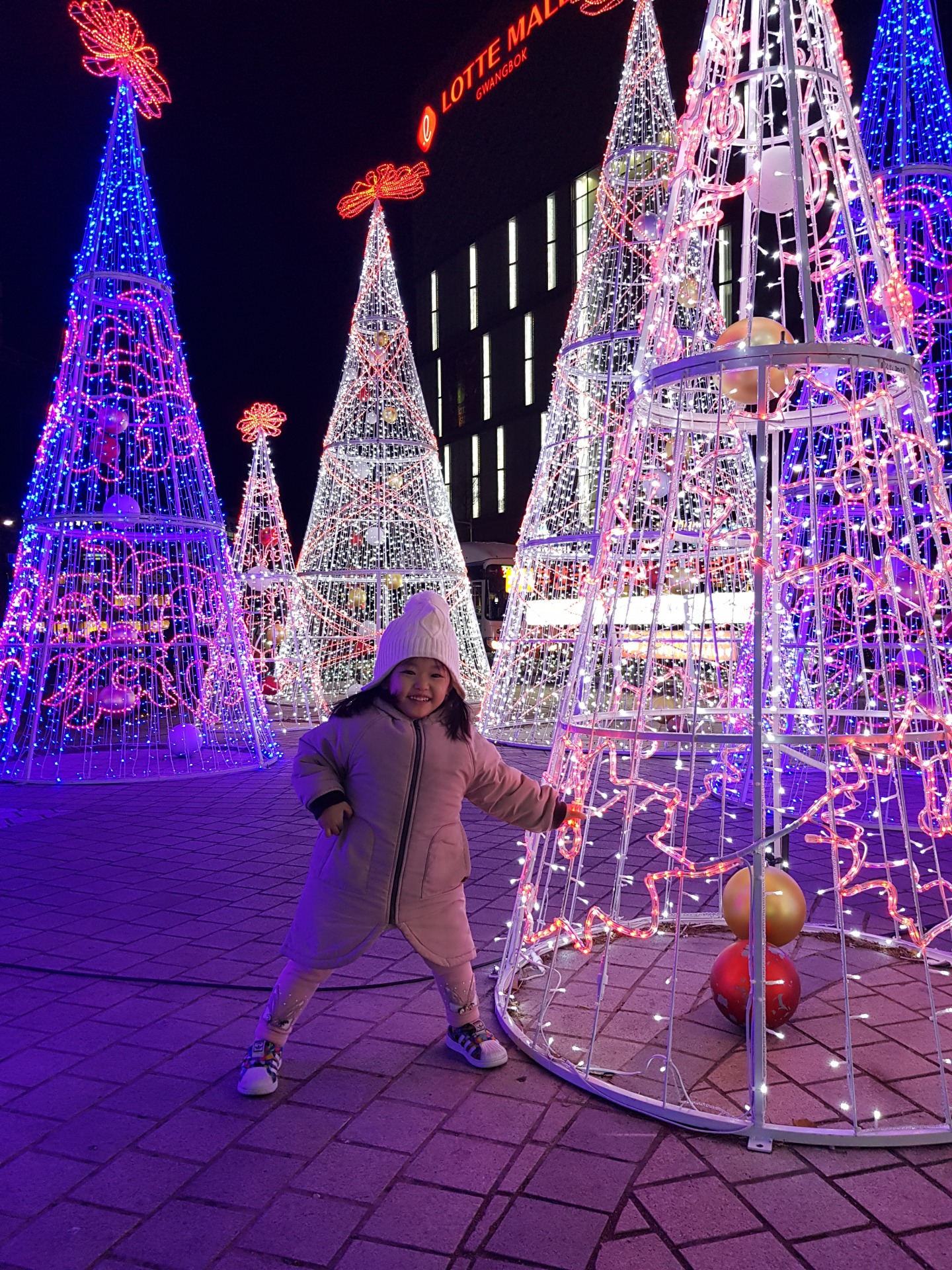 목적지인 크리스마스 트리 앞에 도착한 엄마 아빠와 시현이^^