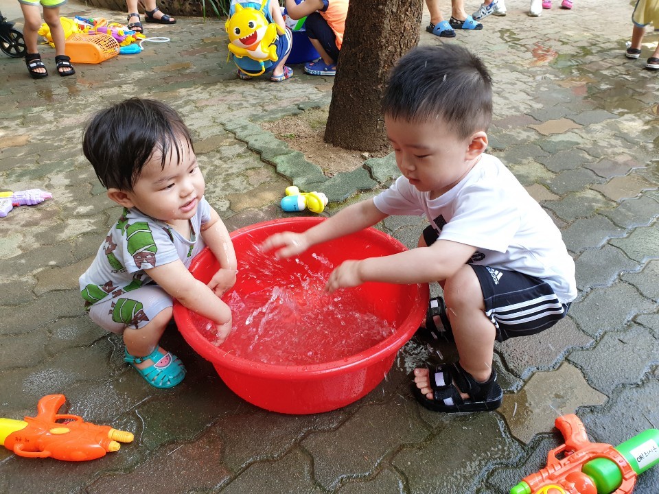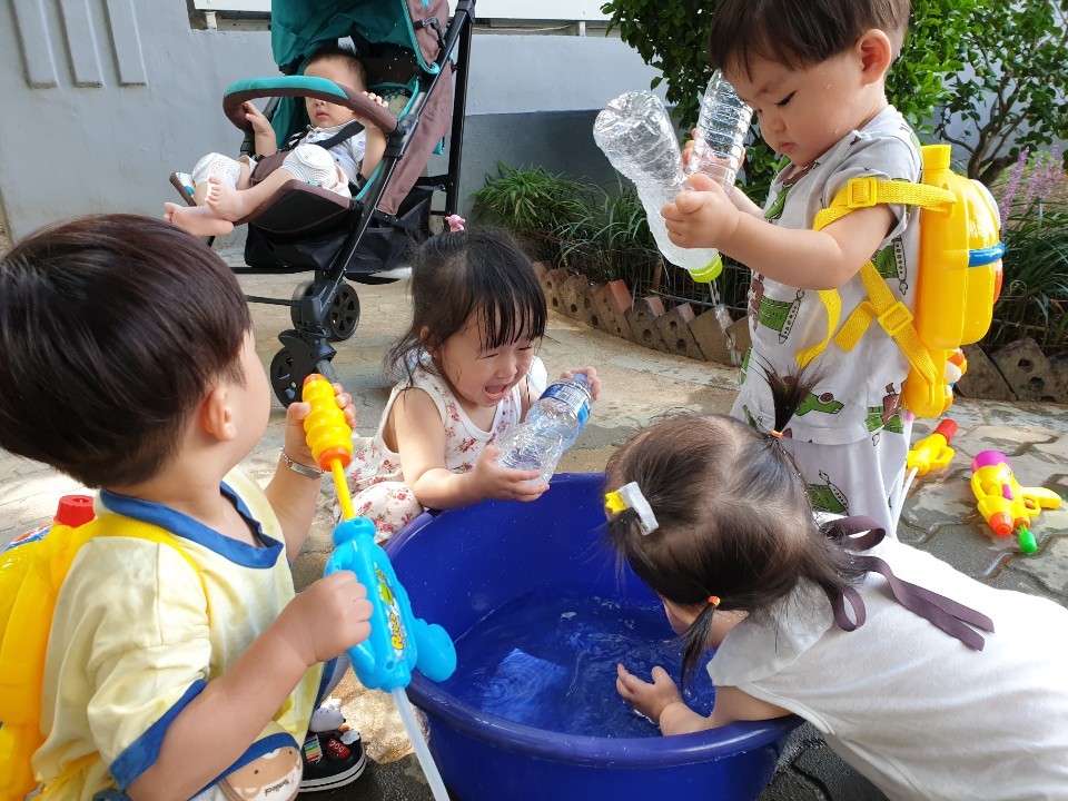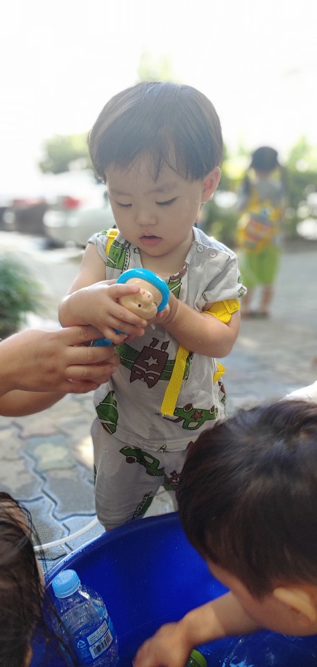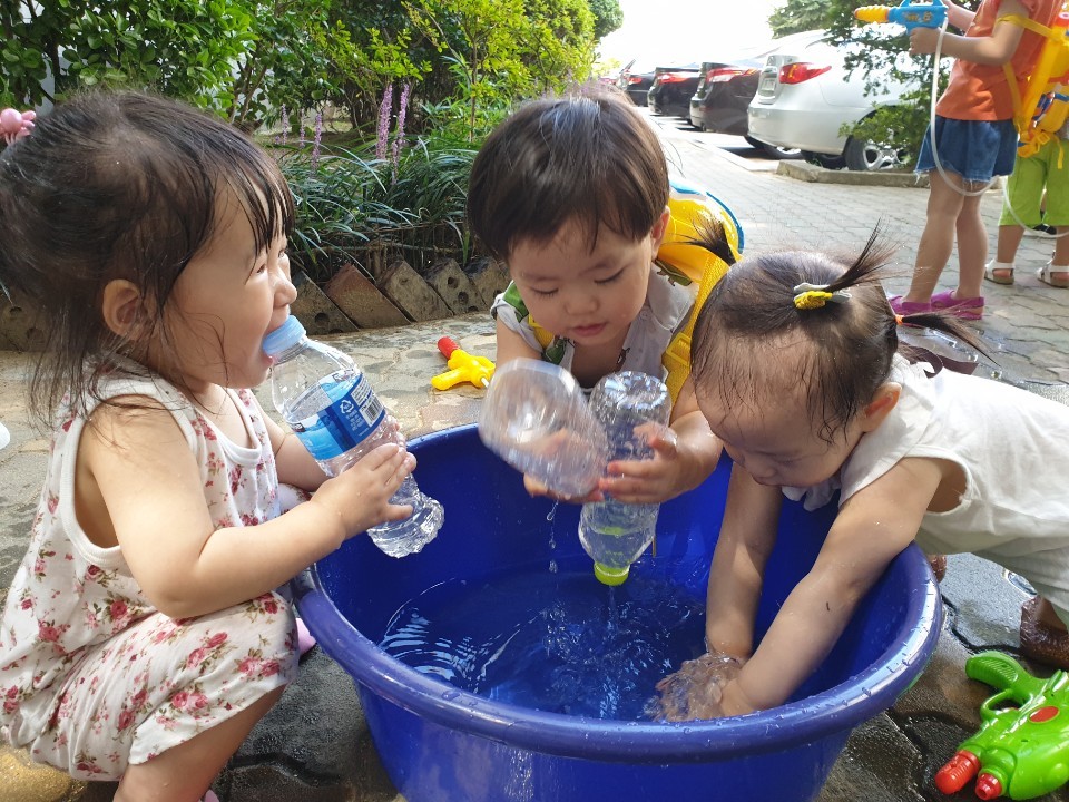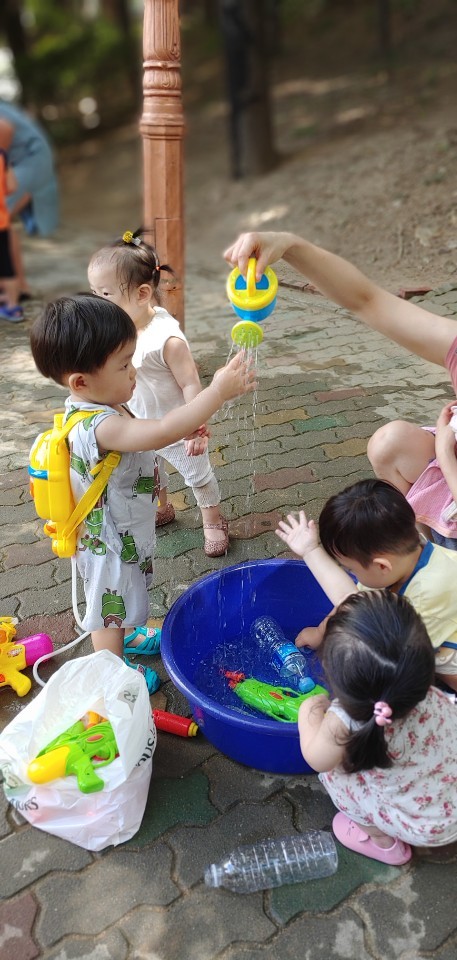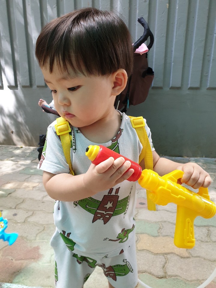 등에 큰 물총을 메고 있지만 그래도 생수병 물총이 좋아~😁