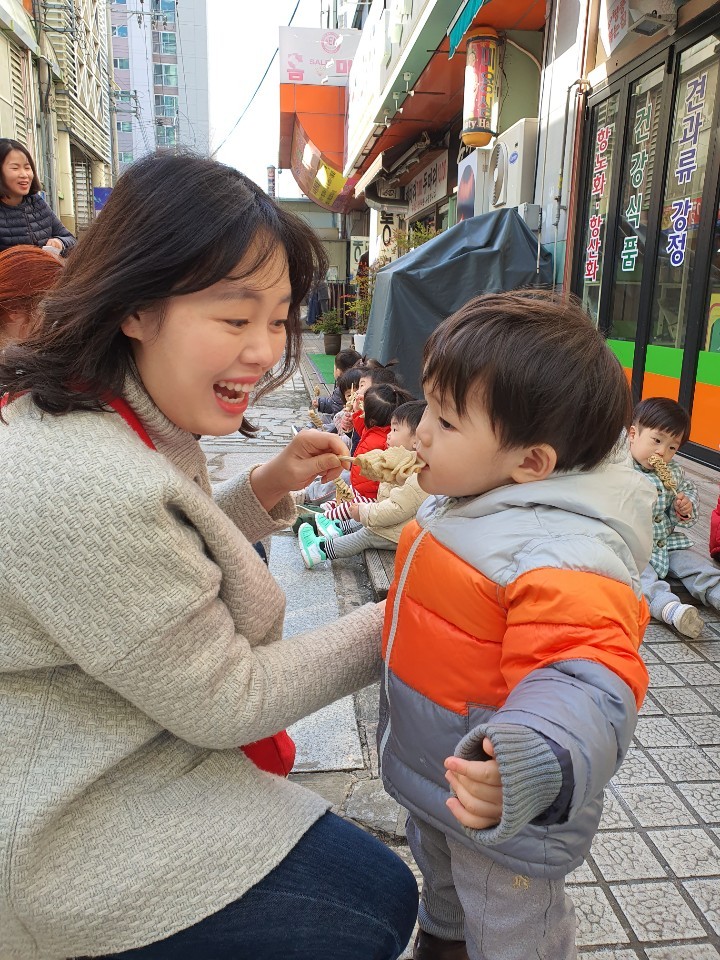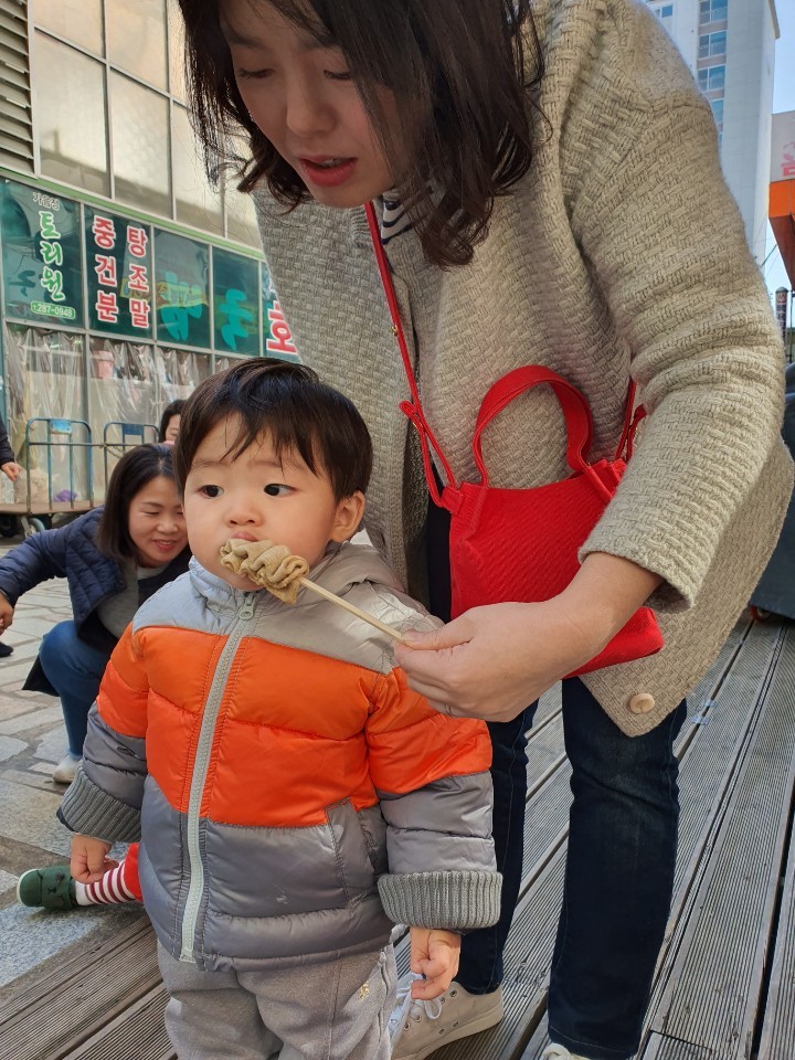 엄마와 함께하는 시장 체험하러 가서 오뎅도 먹었네요.