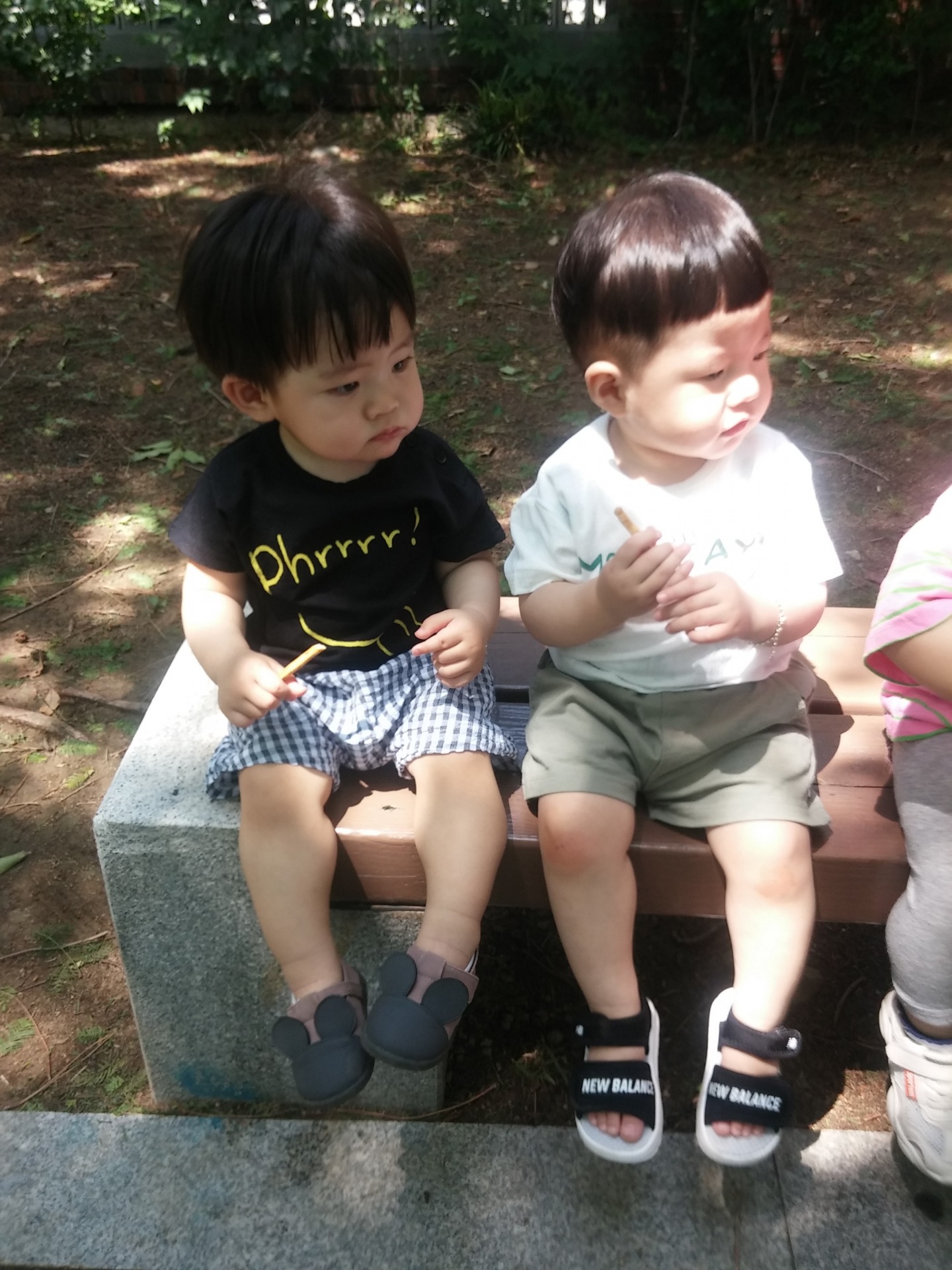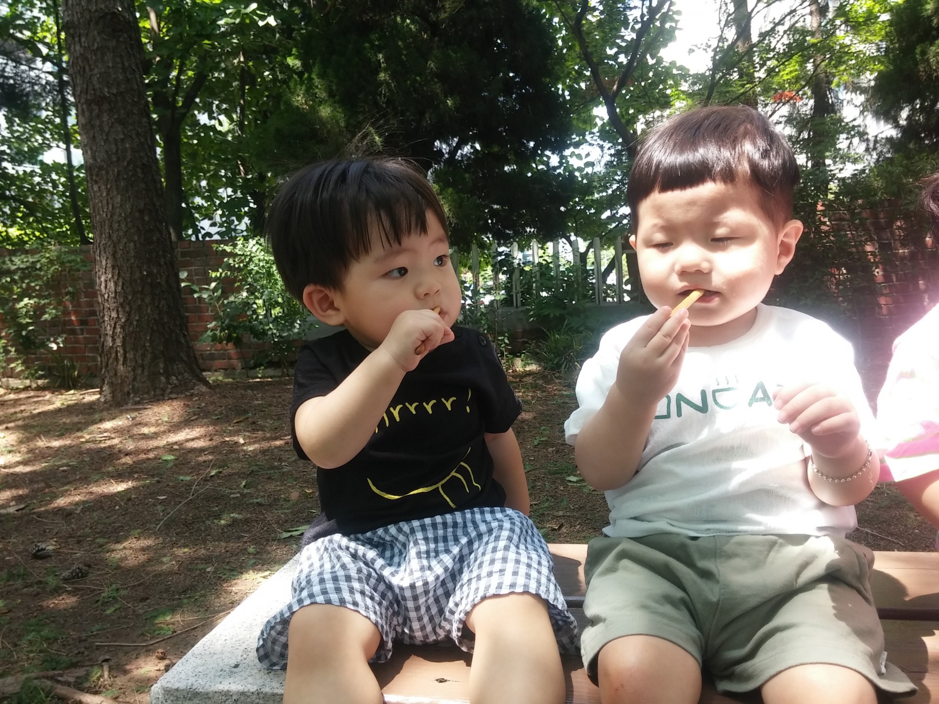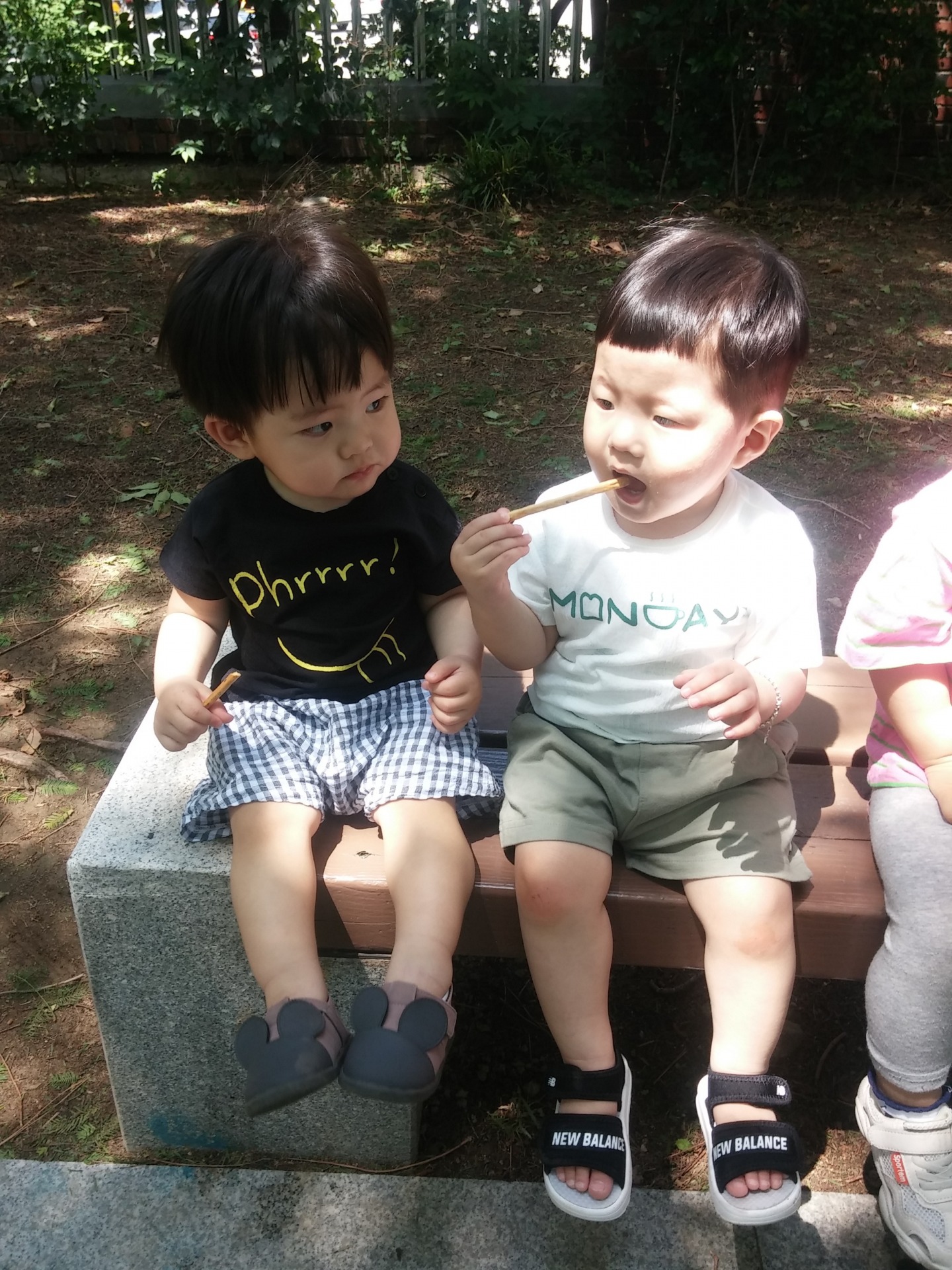 친구 도진이가 과자 먹는걸 유심히 쳐다보고, 따라서 먹는 시현^^