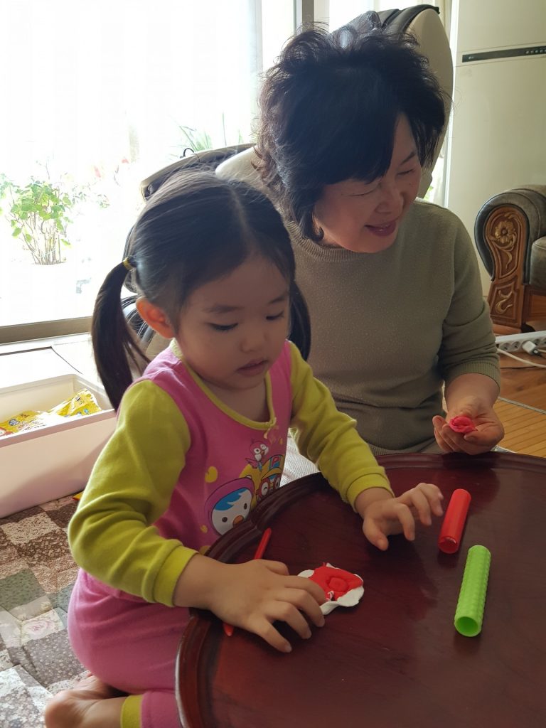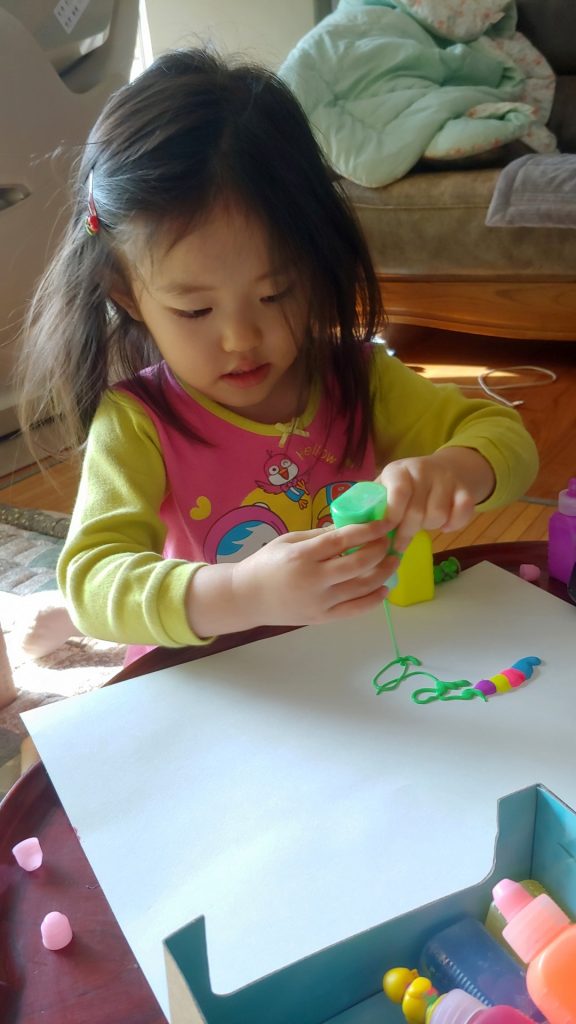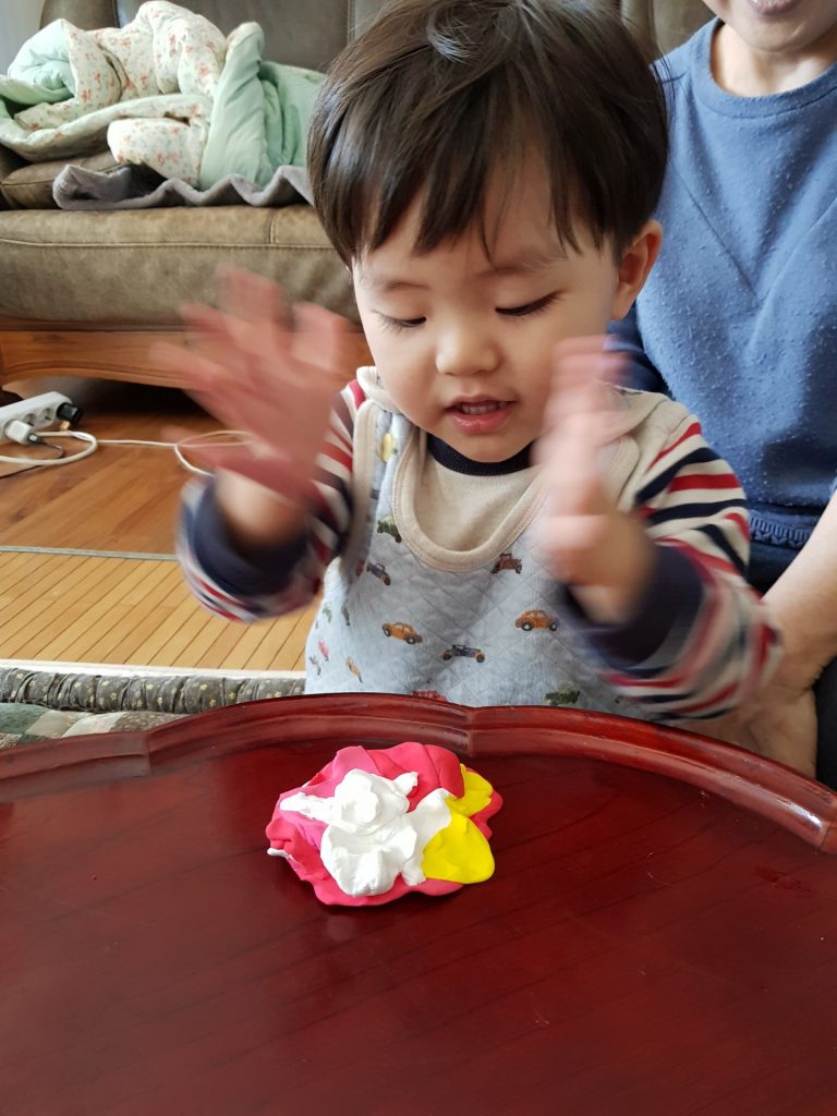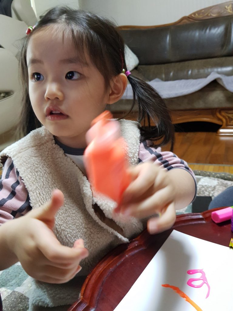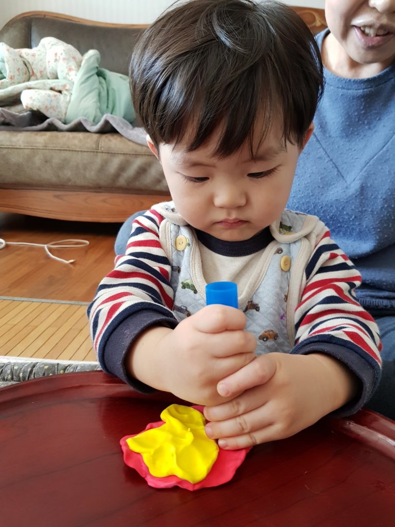 아이클레이로 조물 조물 만져서 뭔가 만들었다. 집중할 때 저도 모르게 내미는 입이 영락없는 지 아빠 판박이다. DNA는 참으로 놀랍다(⊙ˍ⊙)