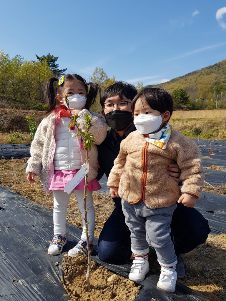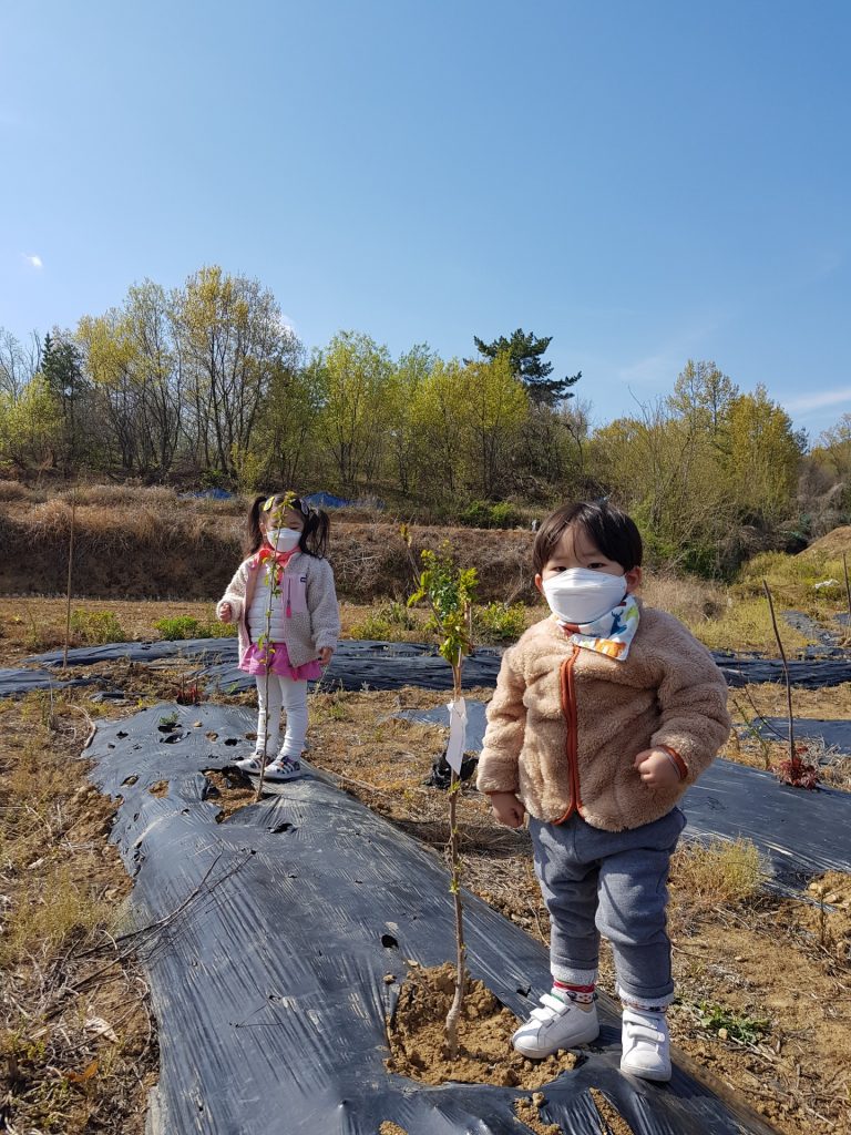 코로나로 어디 놀러가기 어려운 아이들을 데리고 외할머니가 서현이 시현이 나무를 심어 두신 창녕 밭으로 놀러갔다. 손 많이 가지 않는 나무를 심는다고 거죽나무로 심으시면서도 서현이 시현이 나무는 특별하게 체리 나무로 심어주셨다. 언제 자라서 체리를 수확 할 수 있을까?