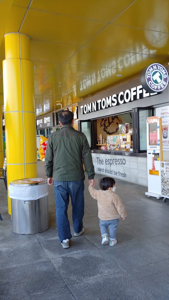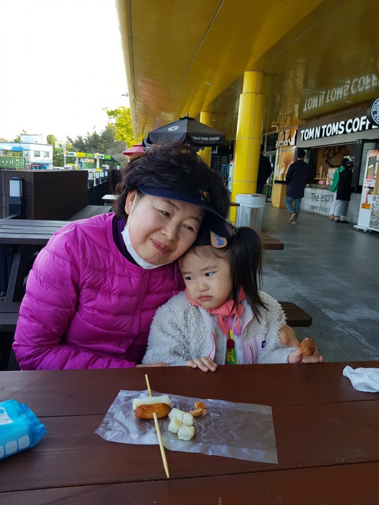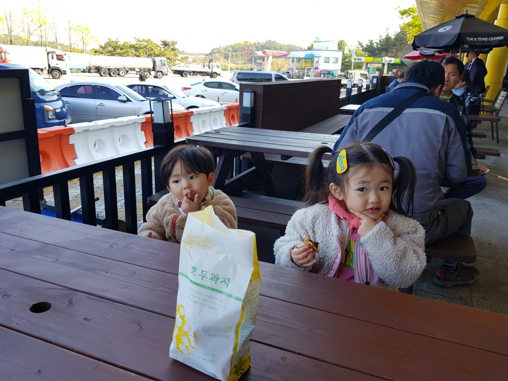 집으로 돌아 오는 길에 간식도 먹을겸 휴게소에 들렀다. 외할아버지 손을 꼭 잡고 어디론가 떠나는 뒷모습이 참 정겹다.