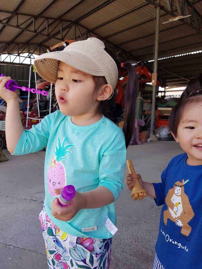 태자 이모님 댁에는 애들이 뛰어 놀 수 있는 넓은 마당도 있고, 애들이 좋아하는 중장비차도 있네. 아랫집 사람들이 좋은 분들이라 지금까지 층간 소음 때문에 올라온 적은 없지만 그럴 수록 애들이 뛰는거에 참 신경이 많이 쓰이는데, 저런 마당 있는 집에서 살면 참 좋을텐데. 창녕까지 왔다 갔다 하는 수고도 마다하지 않으시는 외조부모님의 사랑 덕분에 아이들이 오랜만에 활짝 웃을 수 있었다.