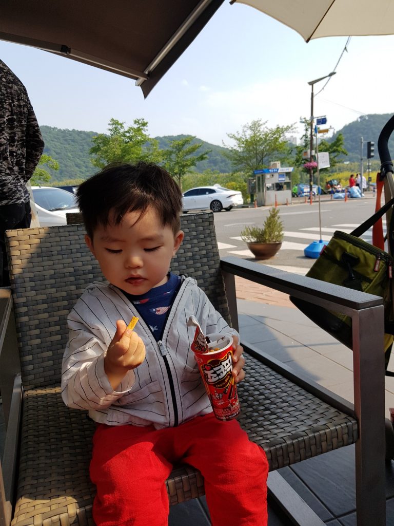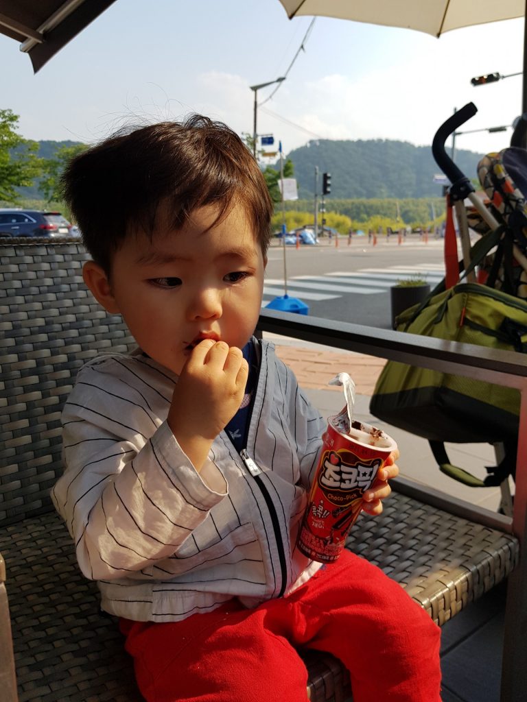 집으로 오는길에 휴게소에 들러서 군것질 하는 아이들. 외할아버지, 외할머니 감사해요😍