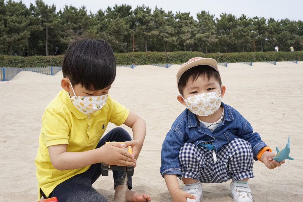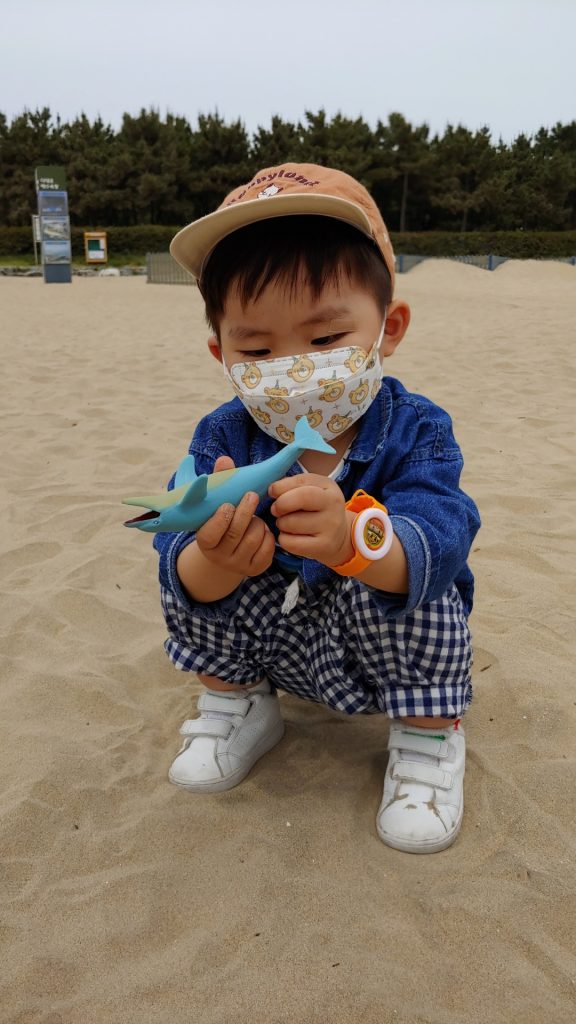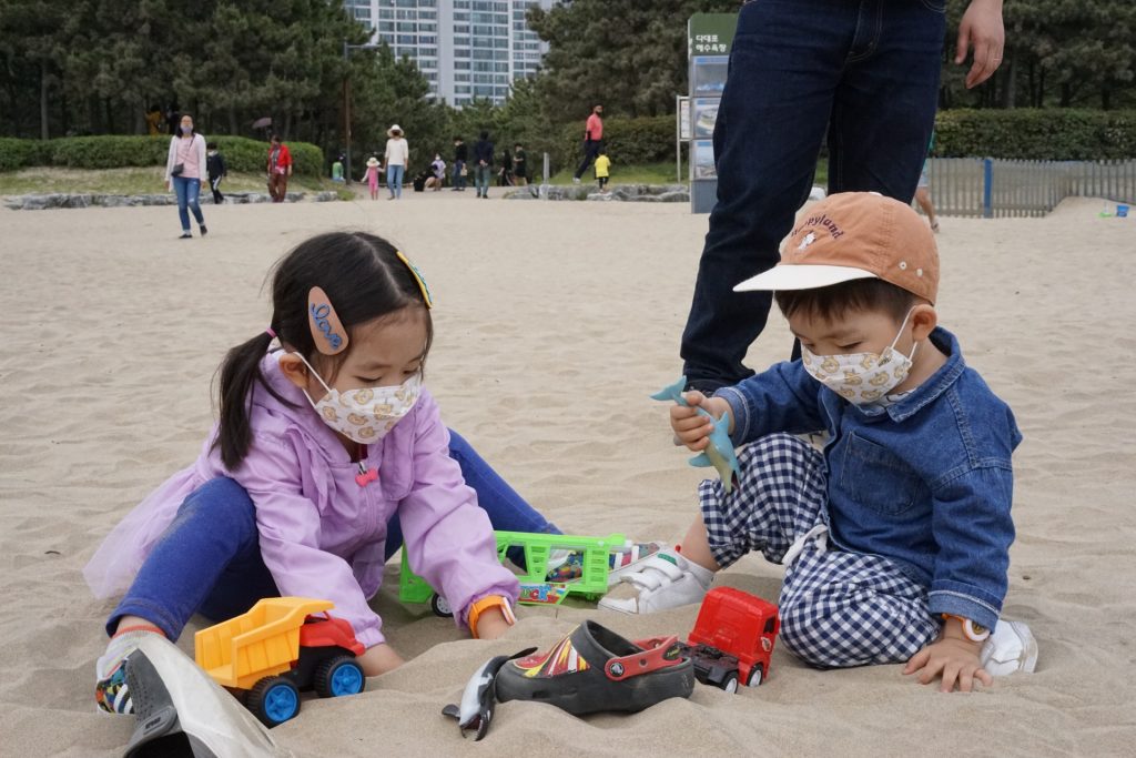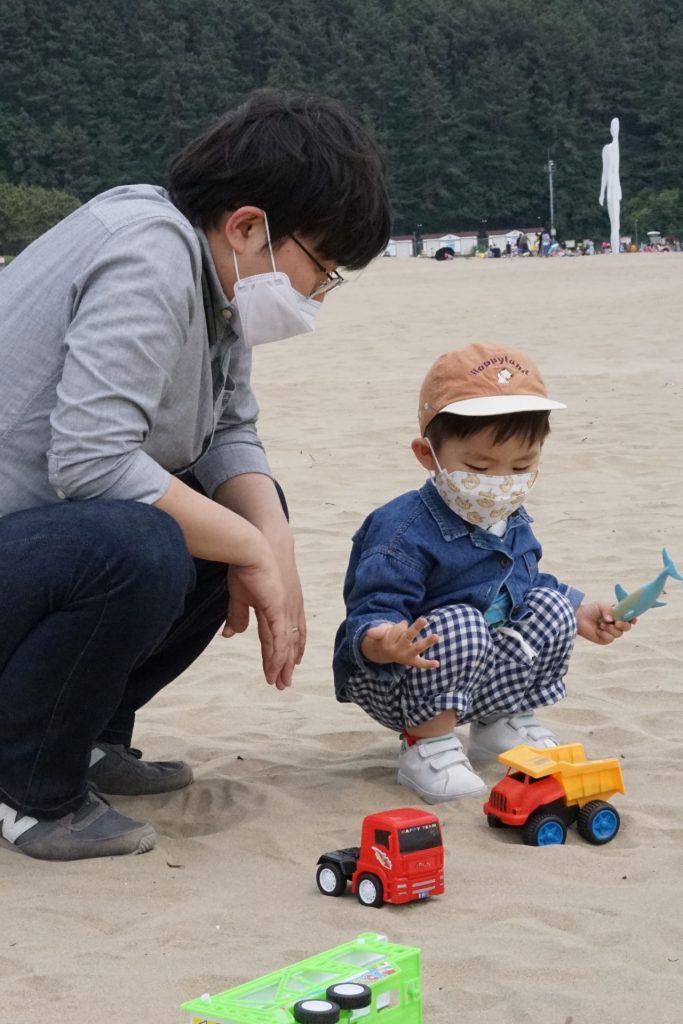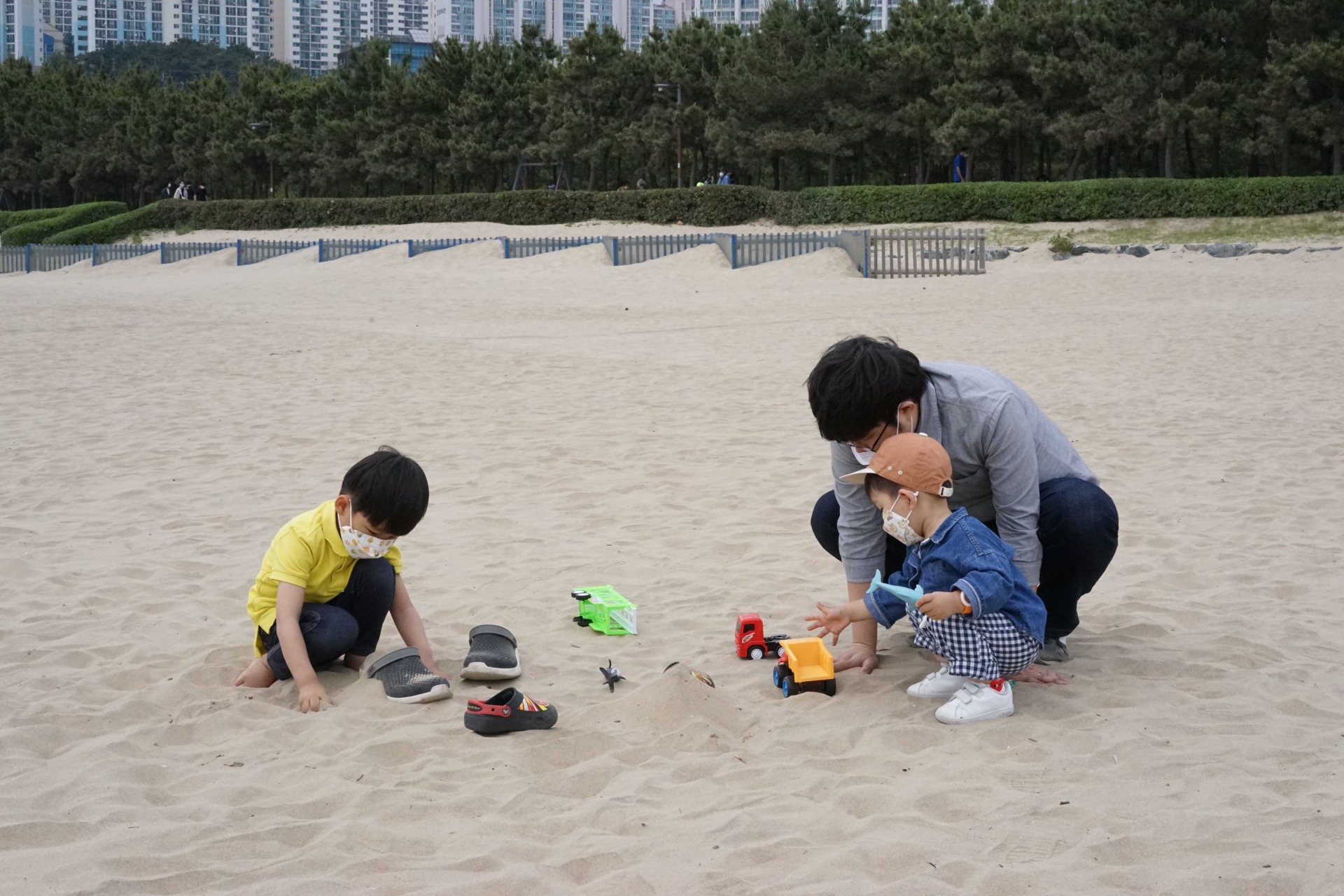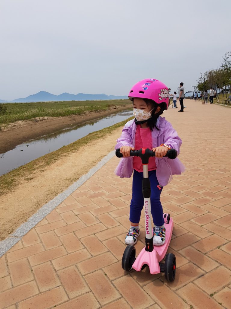 지난 주 진해루에서 씽씽 달리는 킥보드 고수들에 밀려 꺼내지도 못하고 접었다. 이후 애들이 계속 킥보드 얘기를 해서 다대포로 왔던 터라 당연히 킥보드 부터 타자고 할 줄 알았는데, 다대포 도착해서 마루네 만나러 갈 때 잠깐 타고는 모래놀이에 빠져서 킥보드는 뒷전이었다.