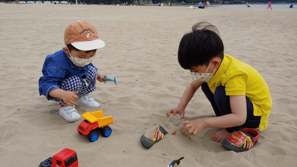 마루네 집 앞 모래 놀이터다 보니 마루는 모래사장에 신발 벗고 노는데 주저함이 없었다. 그리고 마루가 동생들에 맞춰서 아주 잘 놀아줬다. 시현이랑 같이 놀다가 서현이랑은 조금 시간이 걸려서 같이 놀기 시작했는데 사진은 안남았네ㅎ