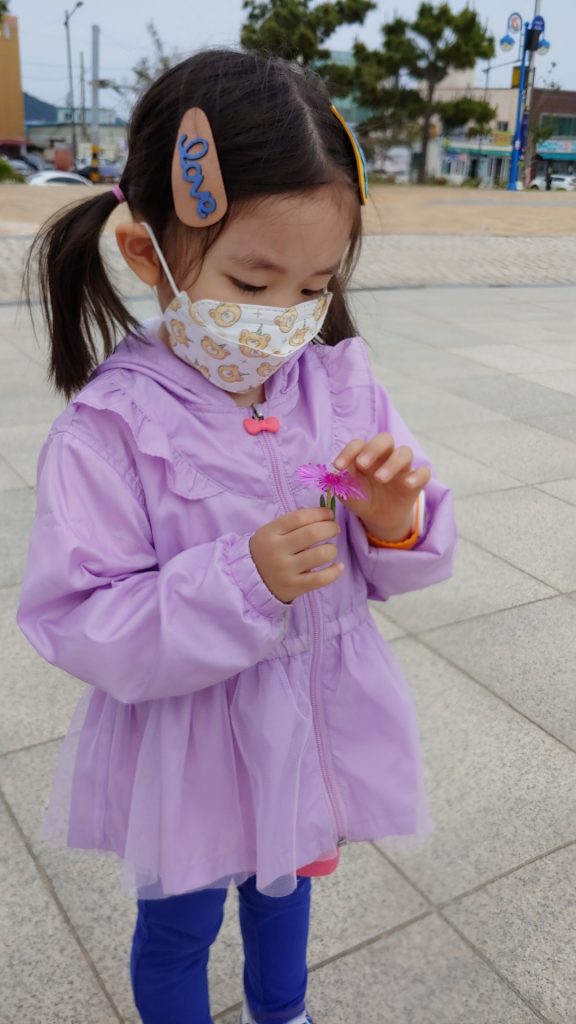 모래놀이 실컷 하고 나서 마루네 집으로 올라갔다. 마루네 집으로 가는 길 마루가 애들한테 꽃을 꺾어 주었다. 참 스윗한 마루다.😍