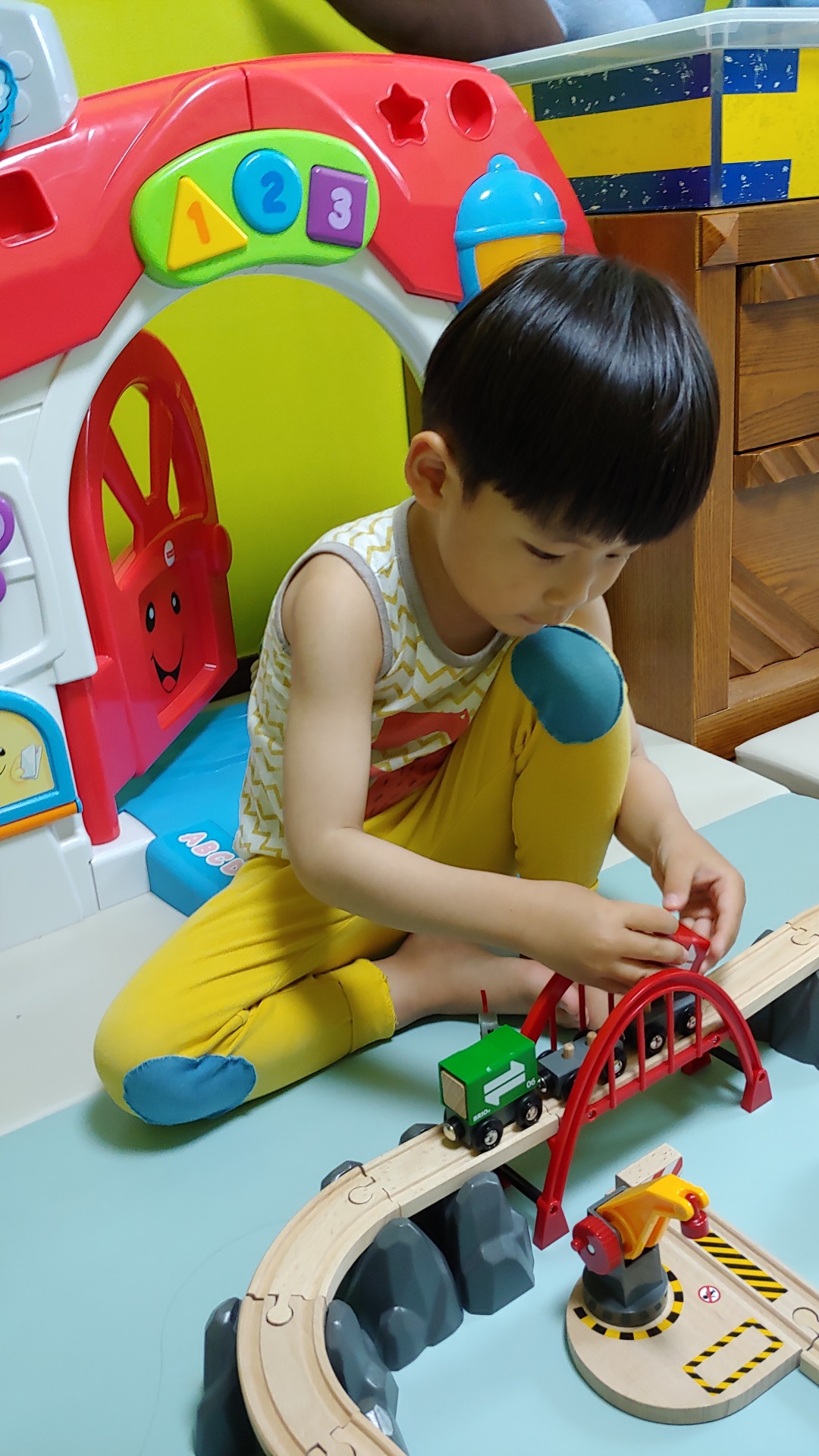 마루가 지난주에 집에 와서 젤로 재밌게 가지고 놀았던 기차놀이. 집에 놀러 올 때 꼭 들고 와달라고 부탁해서 들고 놀러갔다. 우리 애들은 새로운 키카에 도착한 마냥 장난감에 흠뻑 빠져드는 동안 마루는 기차 놀이에 심취했다.