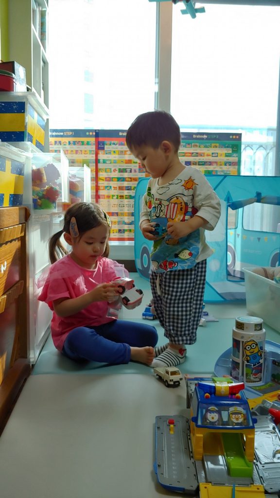 마루랑 진해루 갔다가 집에서 놀았던 한 주 전 그 날, 바로 다음주 약속을 잡았다. 그래서 이번주는 마루네 집이 있는 다대포로 놀러갔다. 도착해서 바로 간단하게 김밥으로 식사를 하고 놀기 시작하는 아이들.