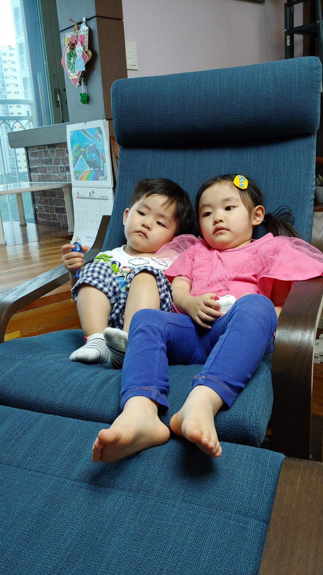 동생 따라서 몇번 아빠한테 밀어달라고 하다가도 혼자 타는게 더 재밌다는걸 깨달은 서현. 역시 누나라 조금 다르네^^
