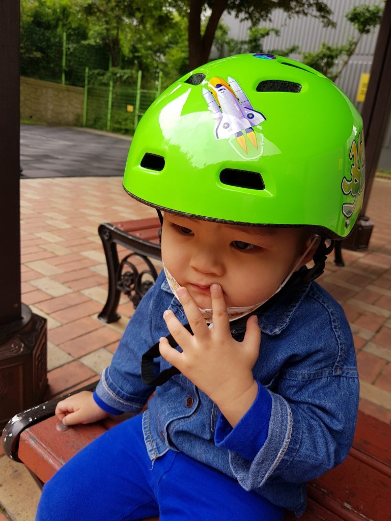 서현이는 저 헬멧 머리에 들어가지도 않는데~