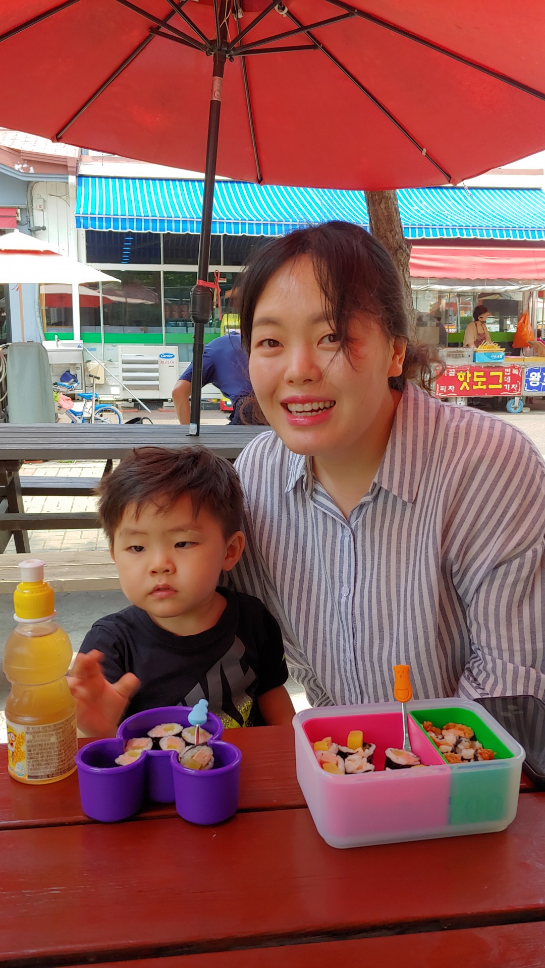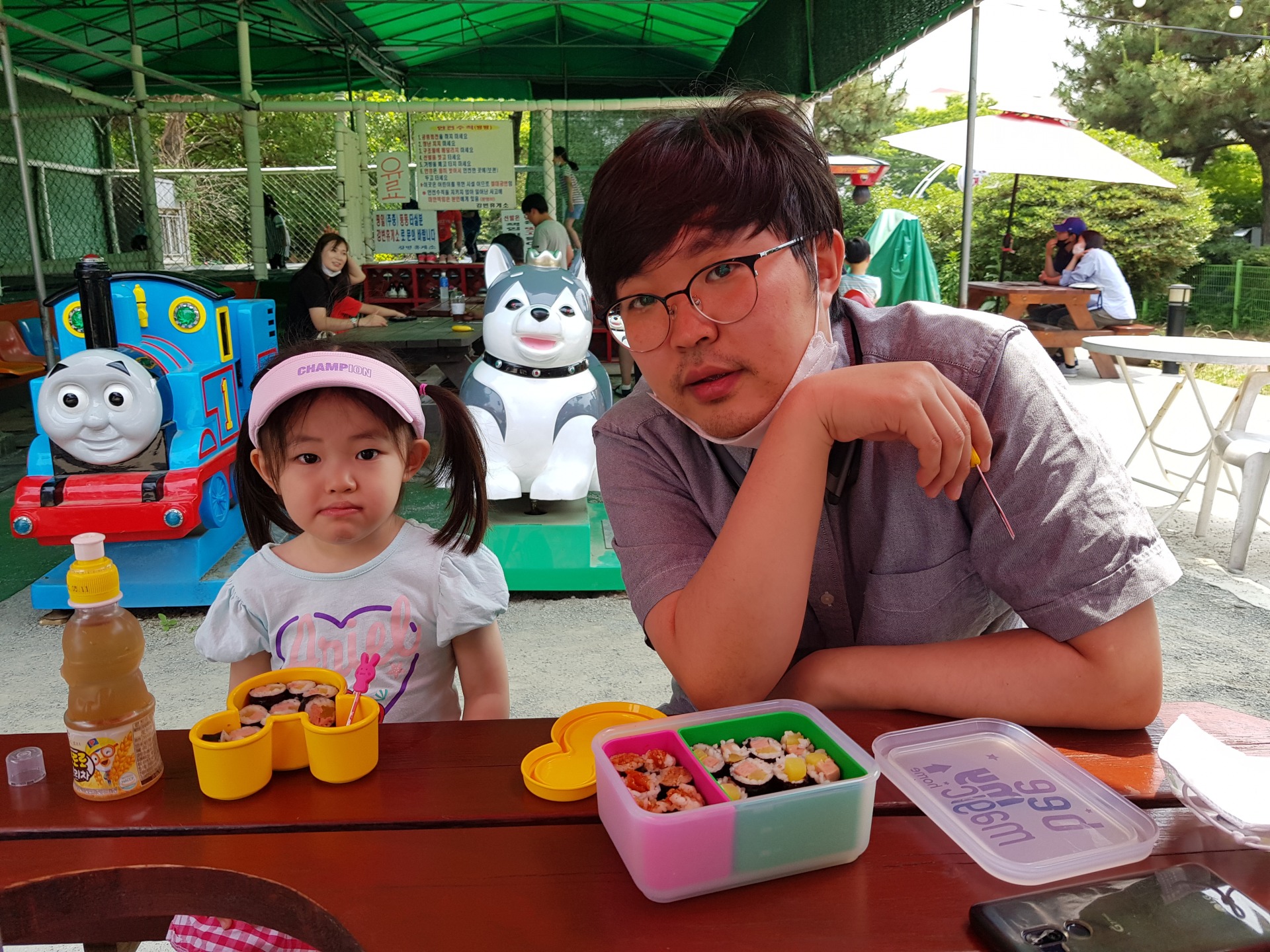 한 번 나가기 시작하니 탄력이 붙어서 아이들이 계속 나가자한다. 현충일을 맞아서 킥보드를 타러 을숙도에 갔다. 나들이에 빠질 수 없는 맛있는 김밥을 싸가서 일단 밥부터 먹고 가볍게 놀이기구부터 타고 놀기 시작.