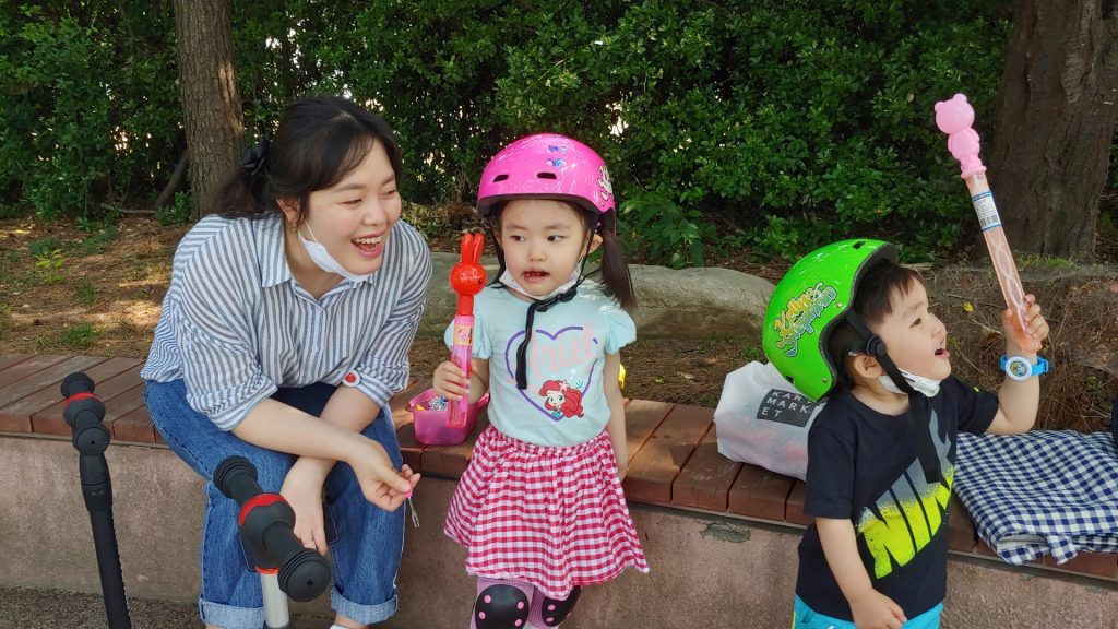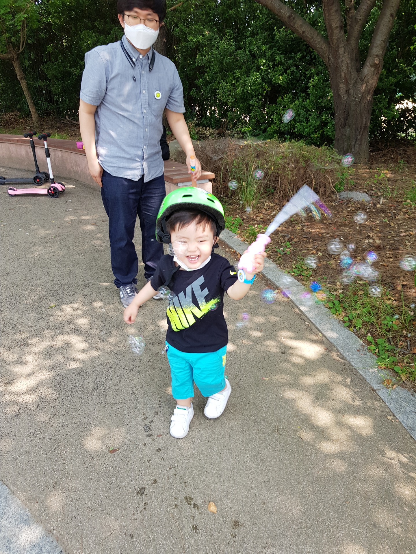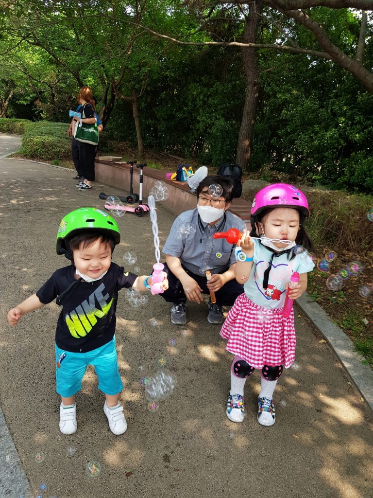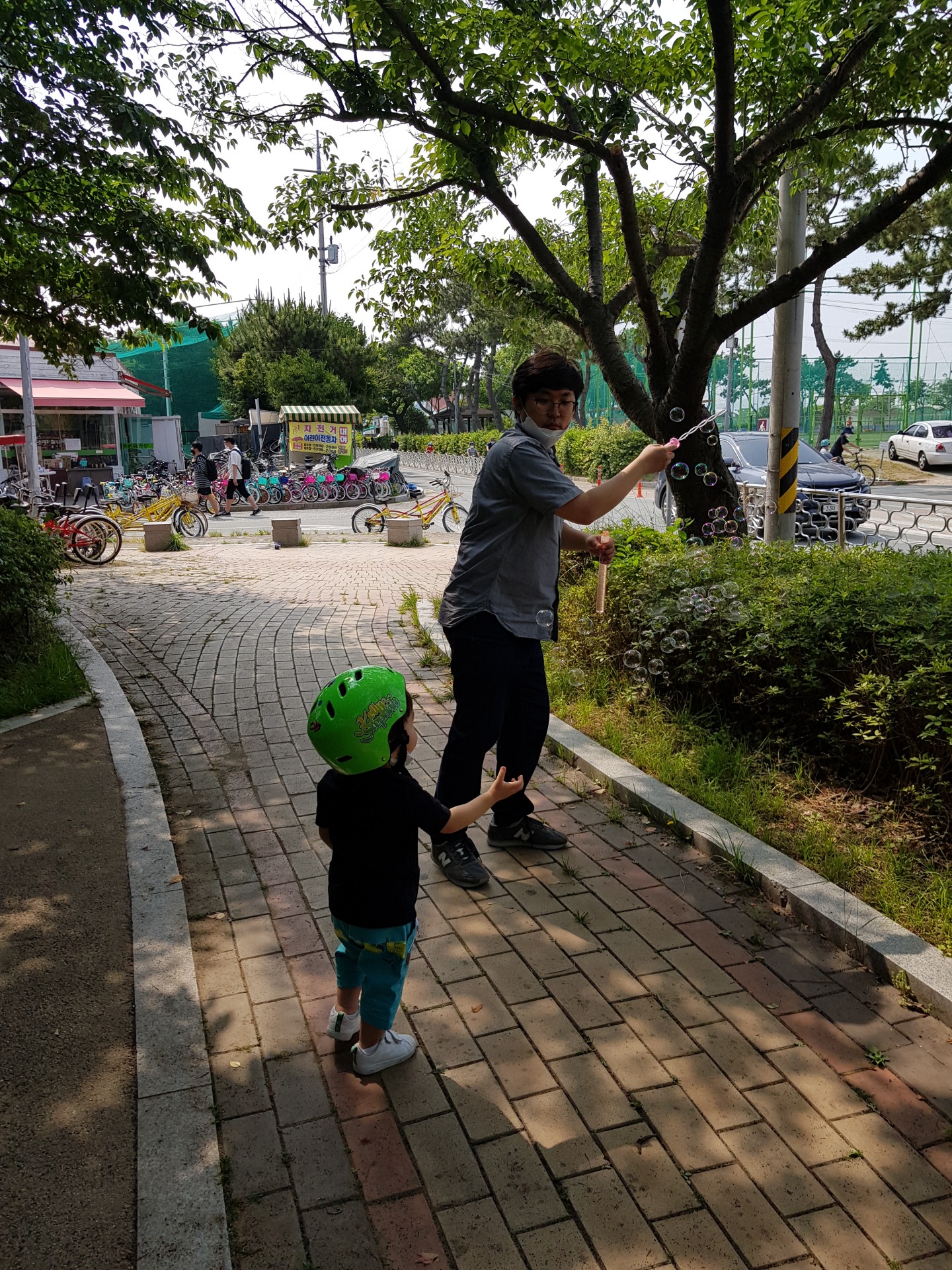 집을 나설때는 분명 킥보드 타러 가자고 해서 을숙도에 놀러 왔지만, 킥보드는 잠시 타고 접고서는 비누방울에 꽂혔다. 별거 아닌 비누방울에도 저만큼 즐거울수 있는 아이들의 순수함이 너무 아름다워서 살짝 질투도 난다. 킥보드를 타나, 퐁퐁을 타나, 비누방울을 갖고 노나 목적은 즐겁게 노는 거였으니 어쨌든 목표달성 완료!!