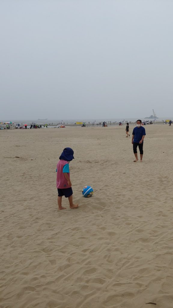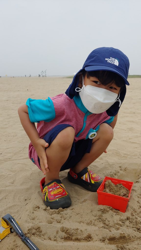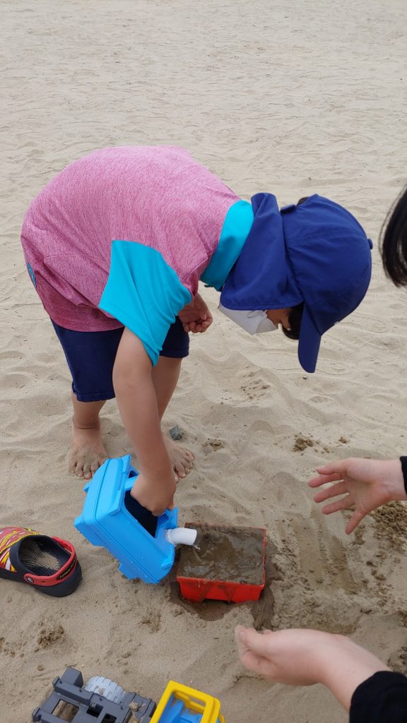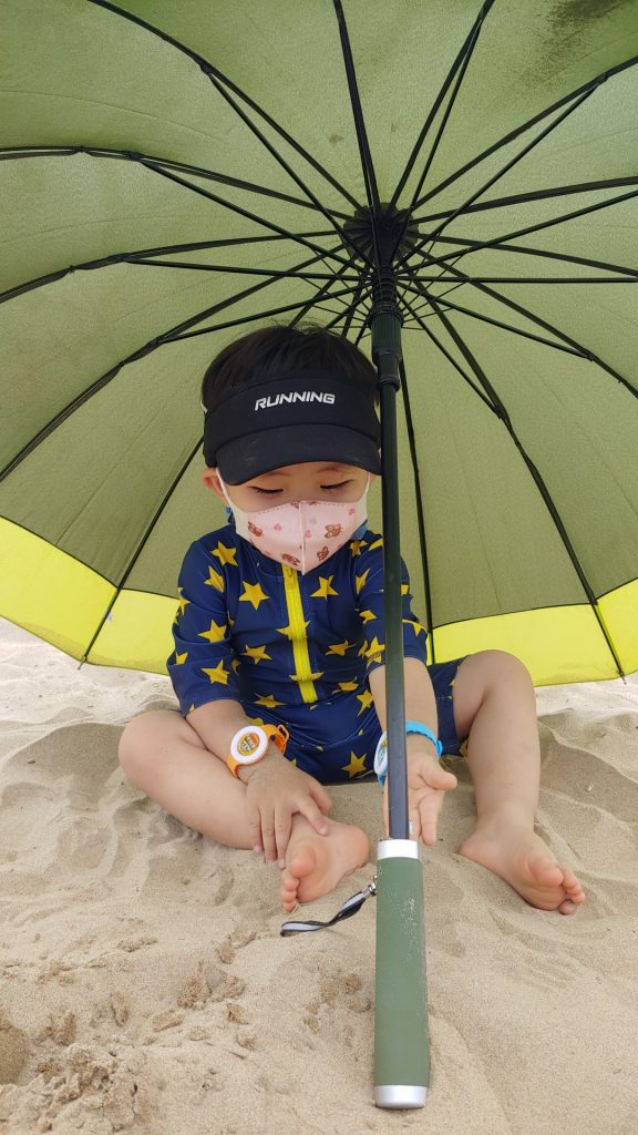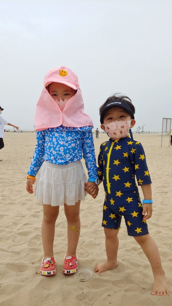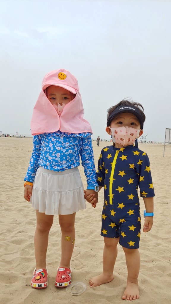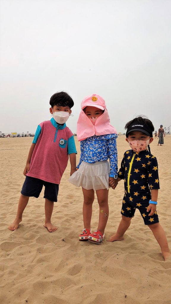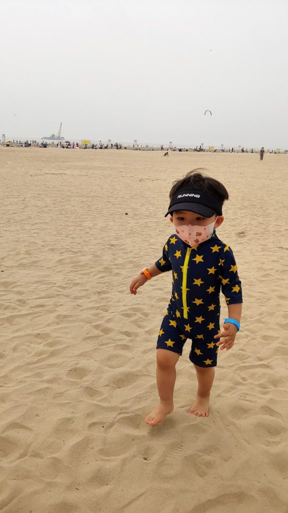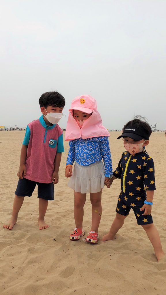 다대포에 가는 주된 목적인 모래놀이. 키즈카페랑 집에서 가짜모래 조금으로 깔짝 깔짝하다가 넓은 모래사장에 풀어 놓으니 애들이 아주 푹 빠졌다. 모래놀이 전용 장난감도 좀 사고,