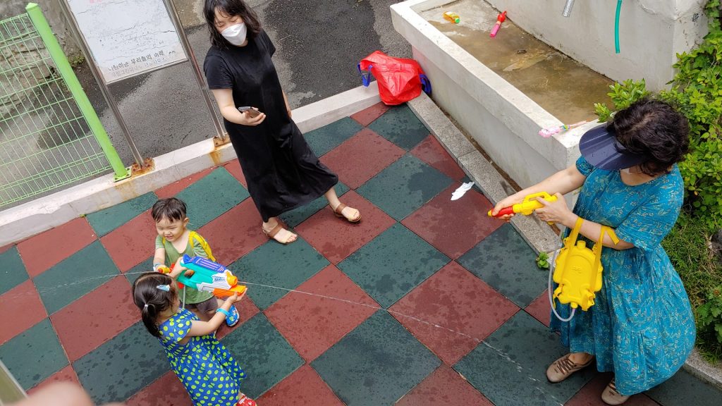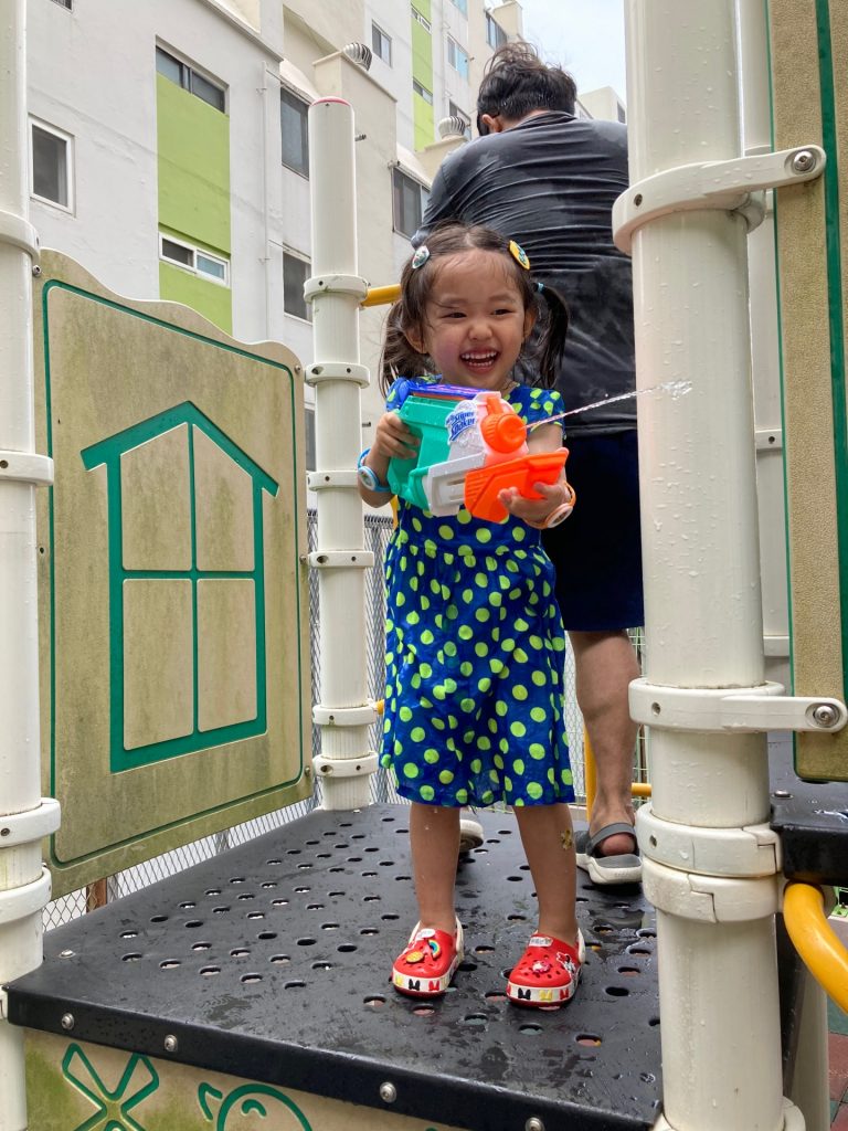 여름 시즌 한정, 그것도 몇 번 할 수 없어서 그런지 물총놀이 할때마다 진심인 아이들 ㅋㅋ 우리 아이들 더는 물총놀이 하지 않을 정도로 클 때까지는 외할머니 이사가면 아니됩니다🤩