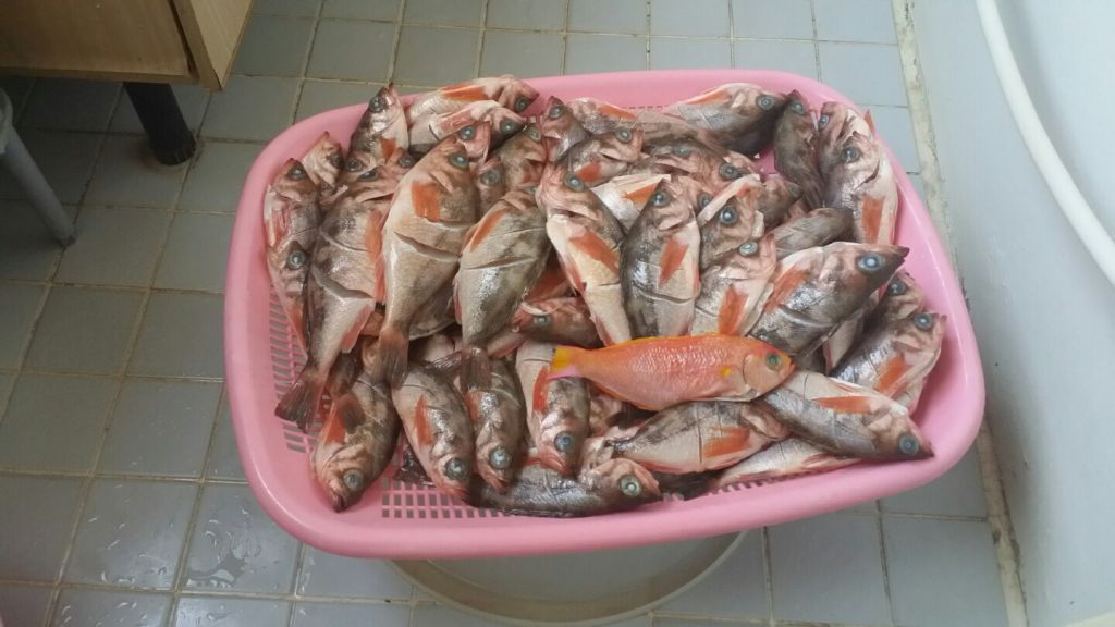 열기사이에 주황색 물고기 처음이라 맛을 알고싶어 구워 먹으니 괜찮았어.
