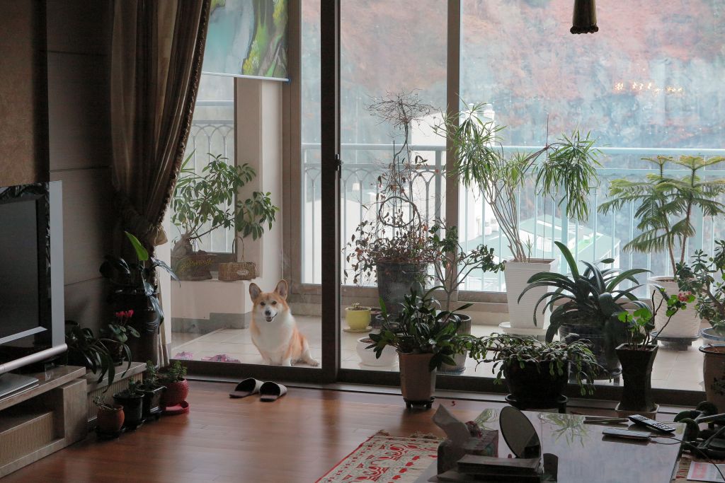 음식 만드는 동안 땅이는 베란다에 격리조치 되어 있었어요 ㅎ