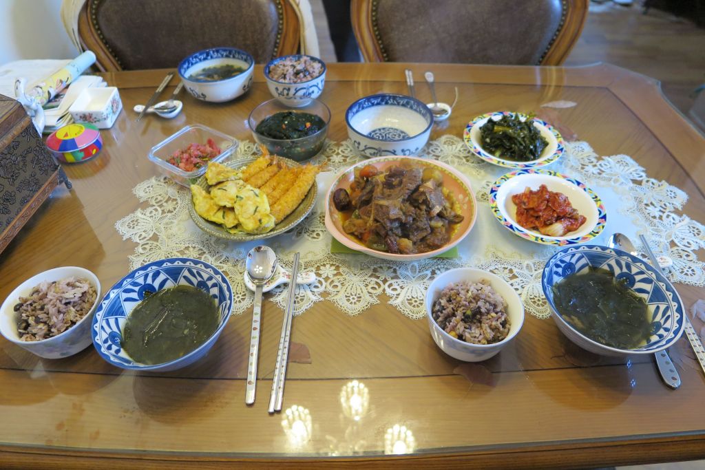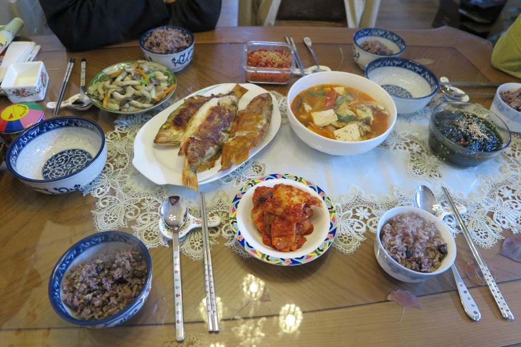 준비한 음식으로 차린 저녁식사입니다. 음식 하나하나 아주 맛있었어요.