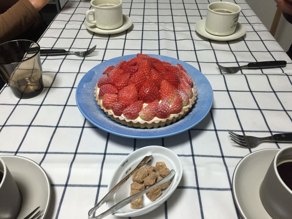 디저트로 딸기 타르트 테이블은
