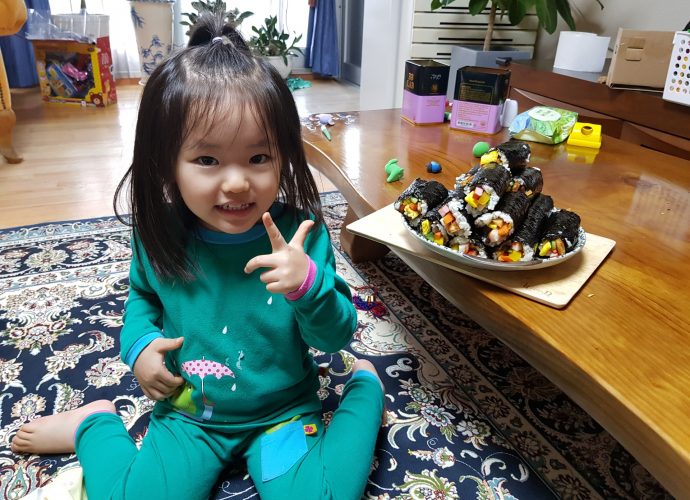 아빠는 일하려고 창원에 있는 사이 아이들과 엄마는 먼저 부산으로 갔습니다. 이때까지만 해도 서현이 엄마 혼자서 애 둘을 케어 한다는건 상상하기도 어려울때라ㅠ 도움 주신 부모님들 특히 장모님 감사드립니다. [김밥 만들기] 서현이가 처음으로 김밥을 만들었네요.(* ̄3 ̄)╭ 밥 한숟갈을 퍼서 김에 펴 바르고, 당근, 유부, 맛살, 햄, 오이 등 재료를 가지런히 놓고, 돌돌돌~Read More →
